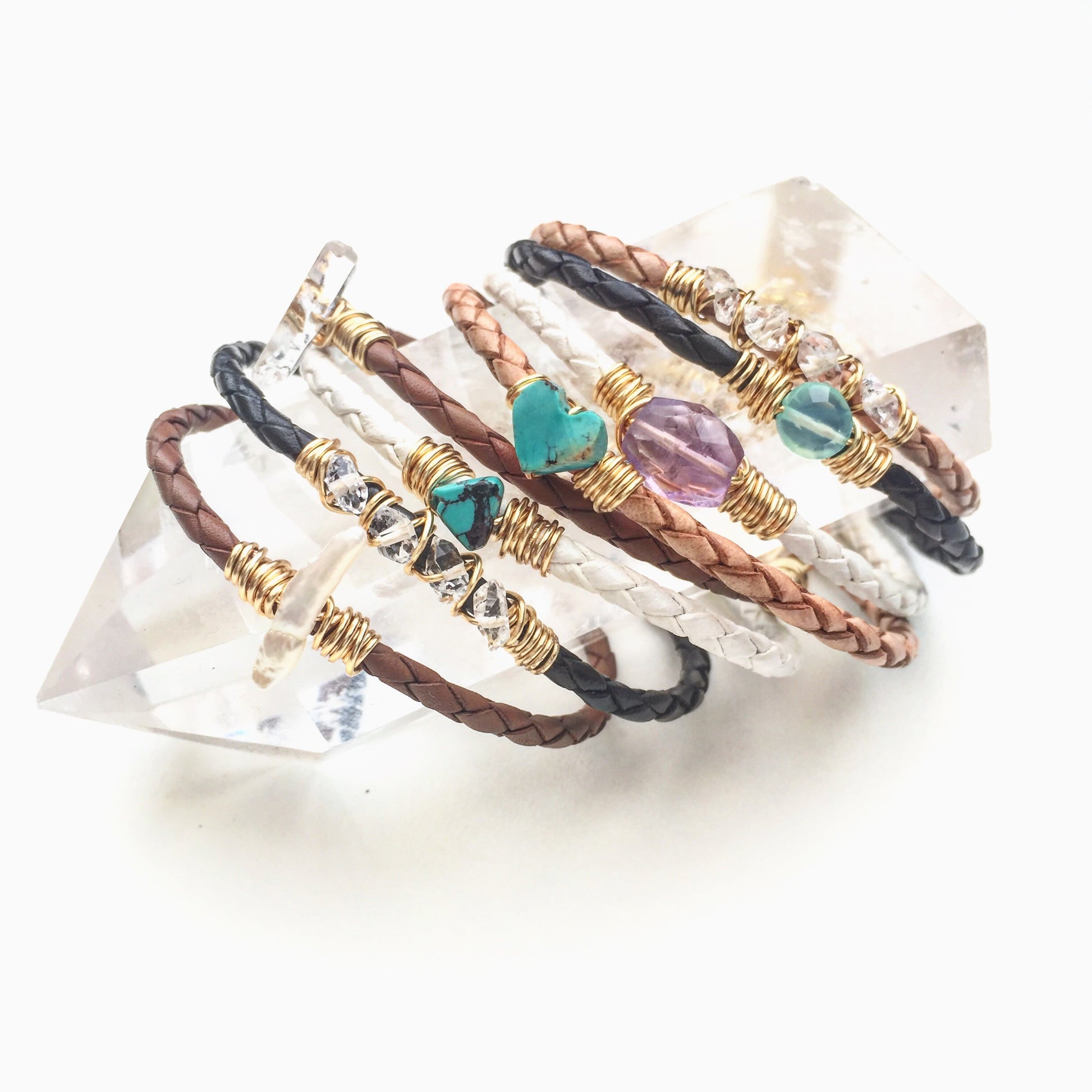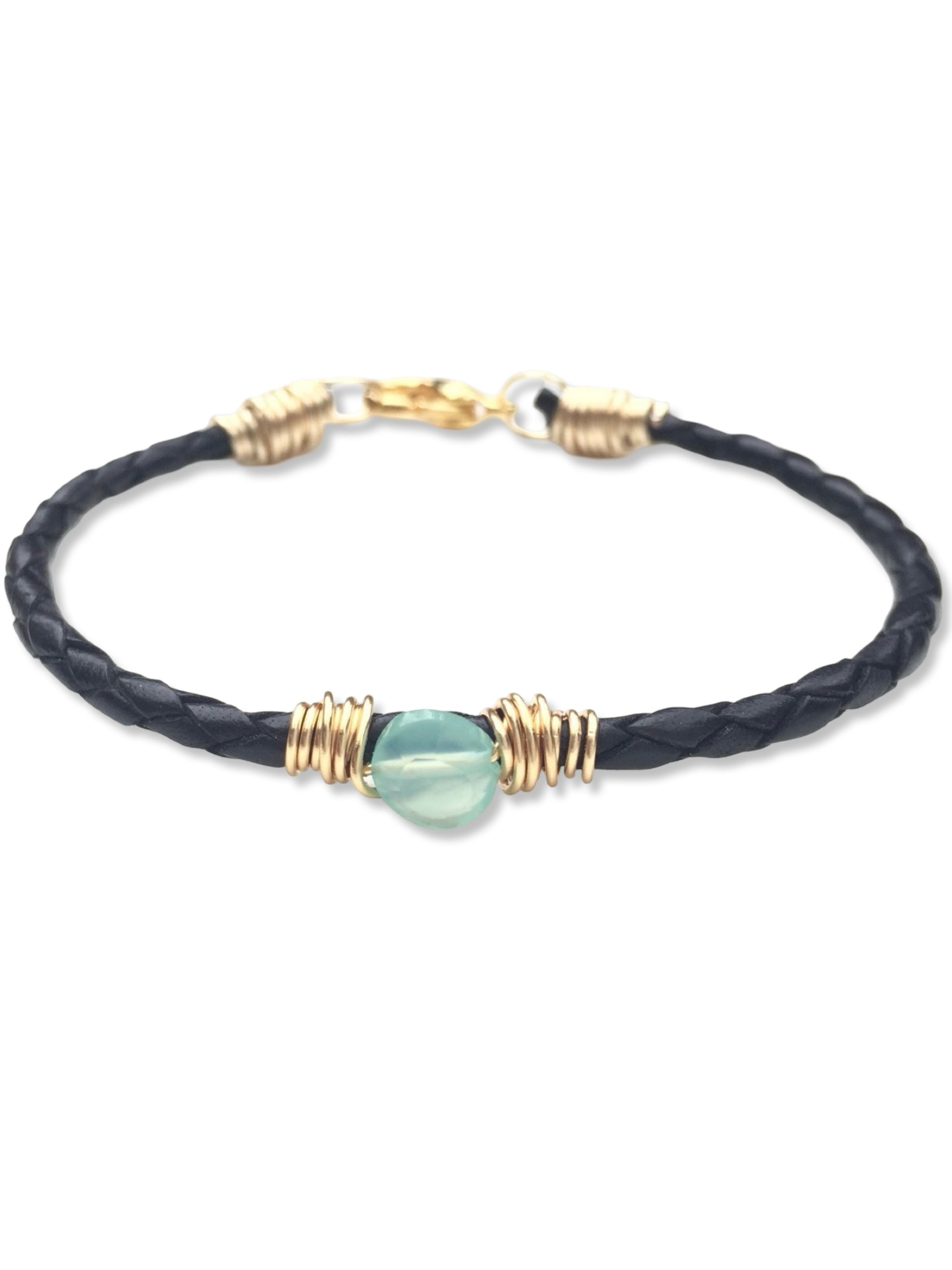 Chalcedony wrapped onto Italian bolo cord leather, fastened with a lobster clasp.