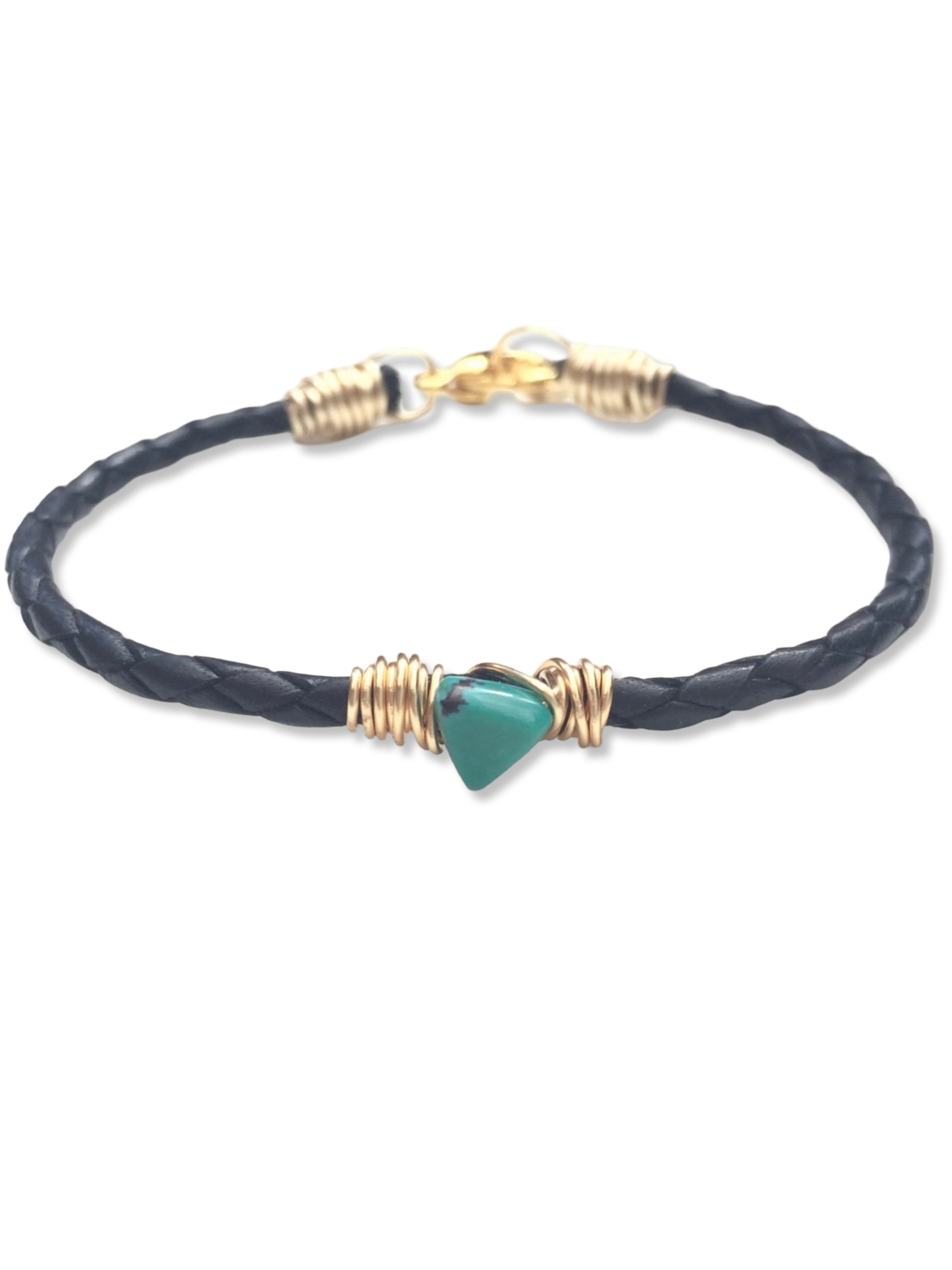 Turquoise wrapped onto Italian bolo cord leather, fastened with a lobster clasp.