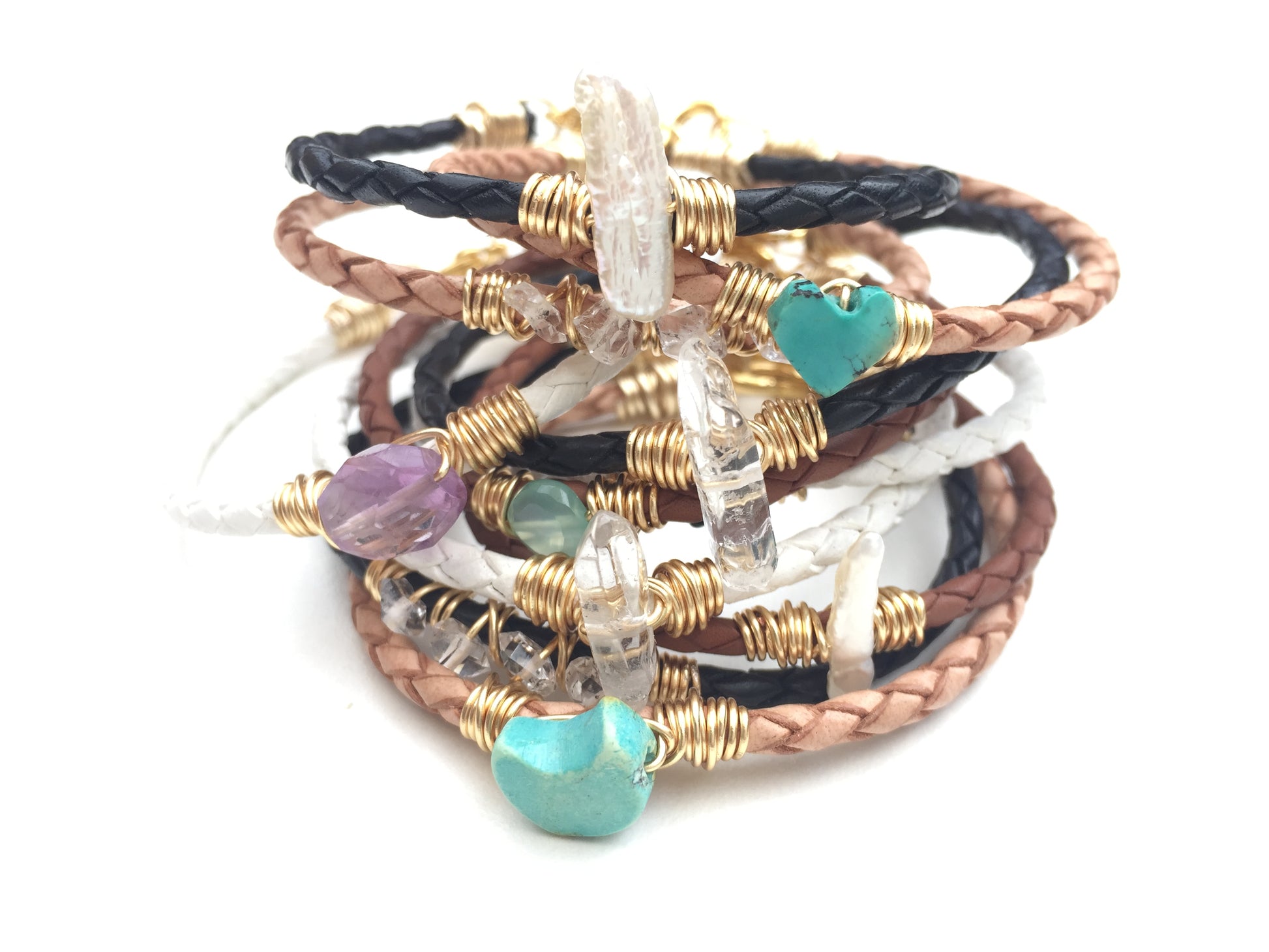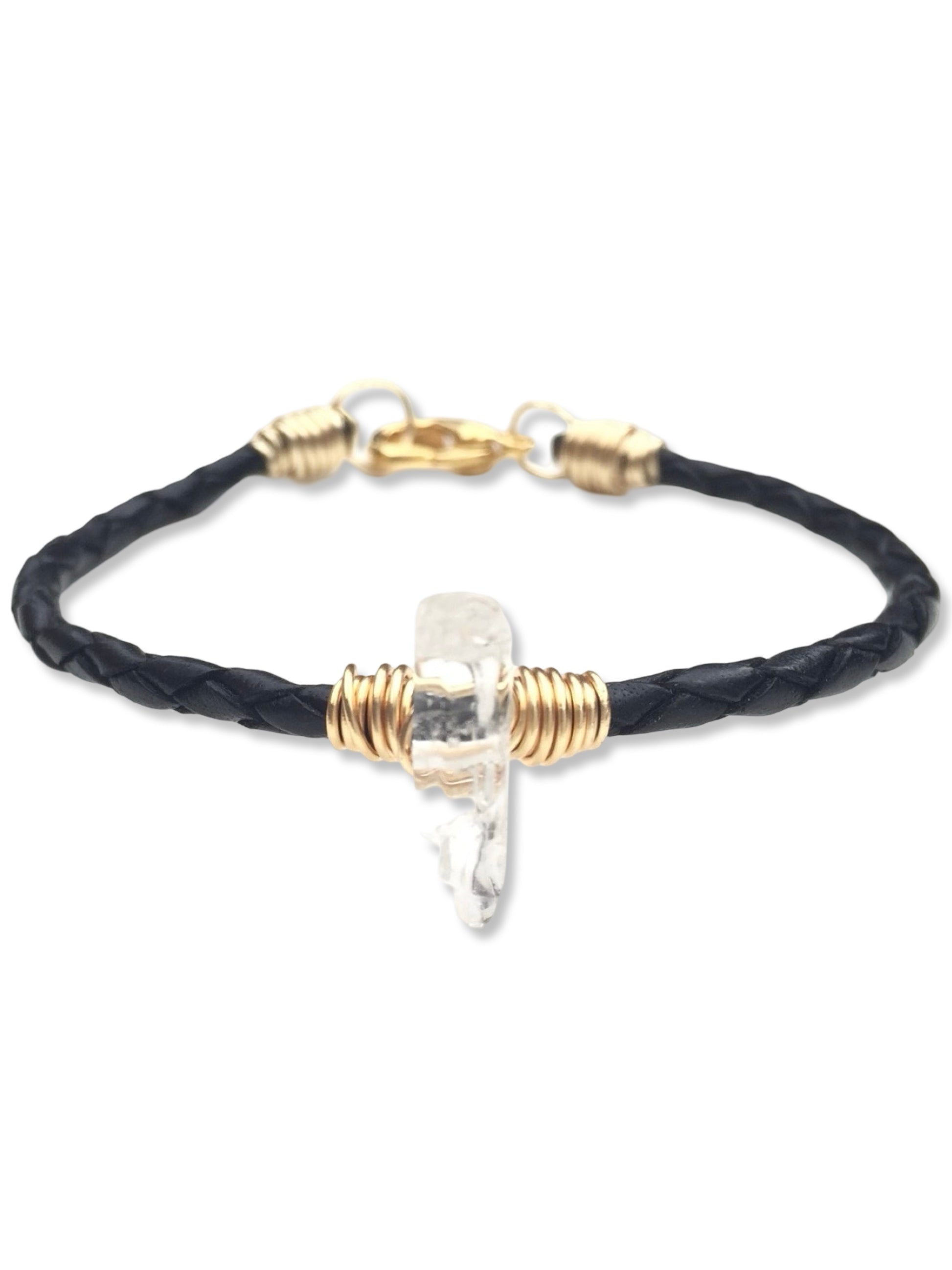 Himalayan quartz wrapped onto Italian bolo cord leather, fastened with a lobster clasp.