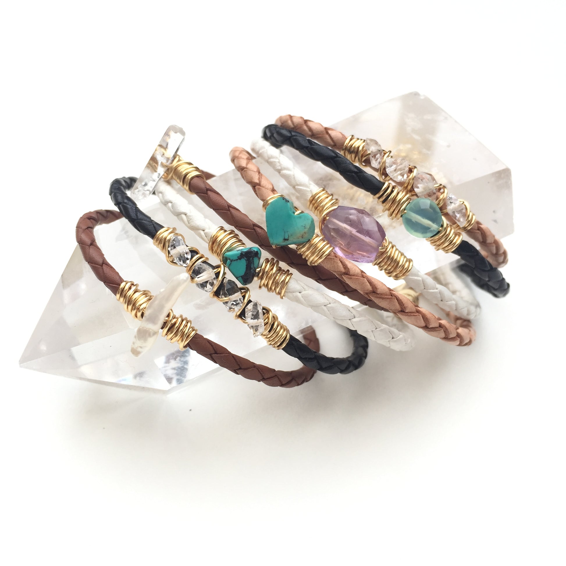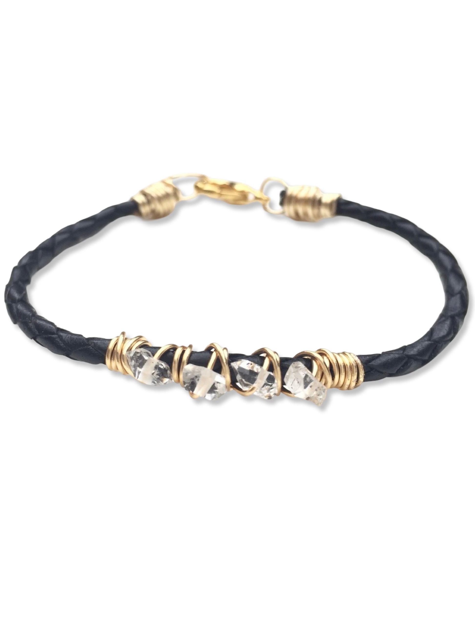 Herkimer Diamond wrapped onto Italian bolo cord leather, fastened with a lobster clasp.