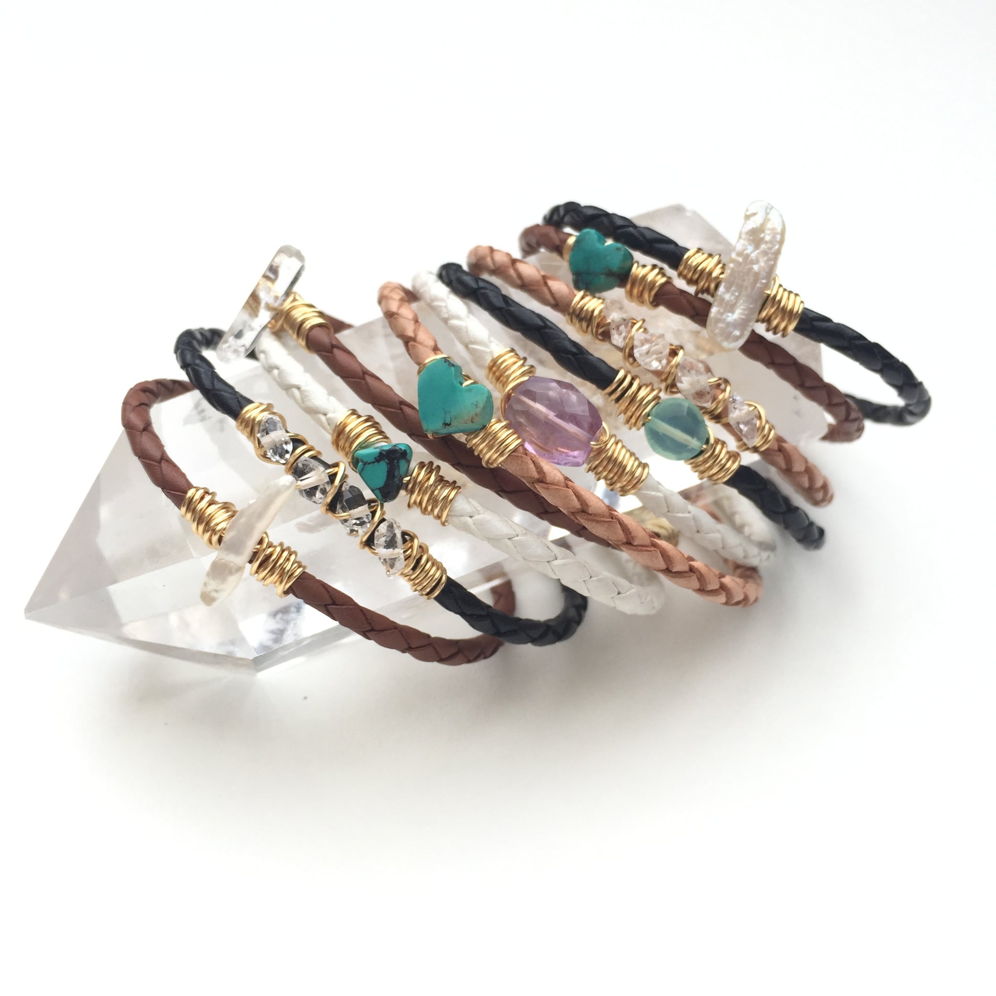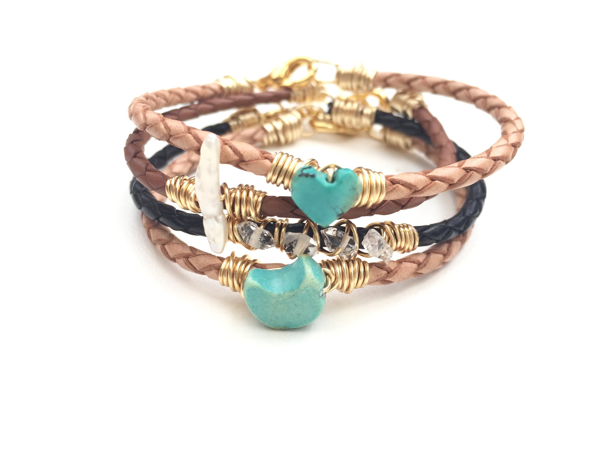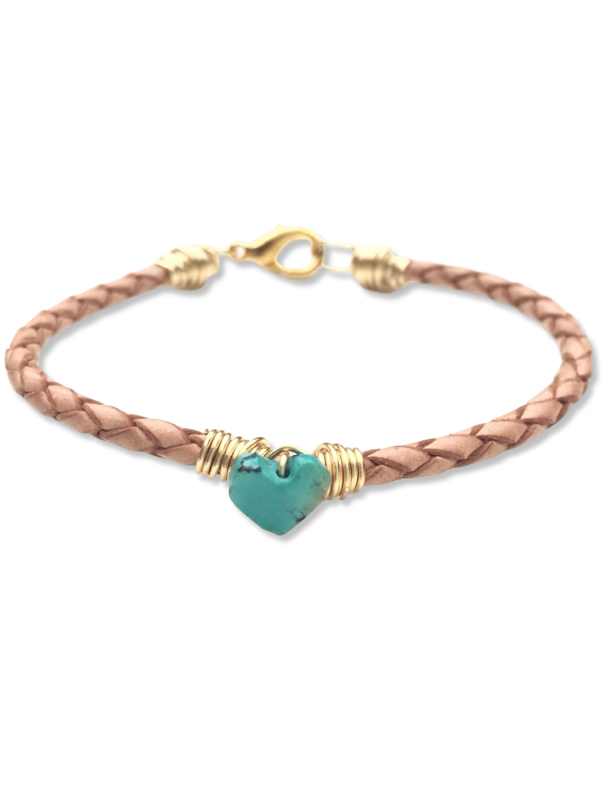 Turquoise heart wrapped onto Italian bolo cord leather, fastened with a lobster clasp.
