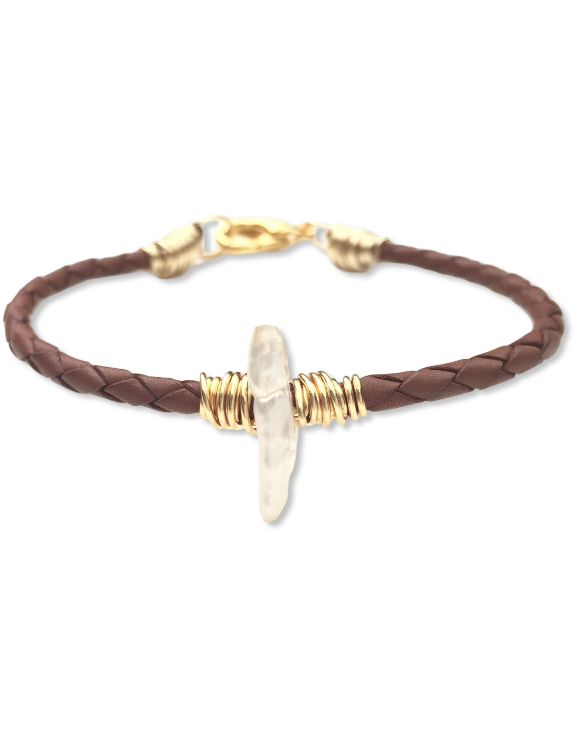 Freshwater pearl wrapped onto Italian bolo cord leather, fastened with a lobster clasp.