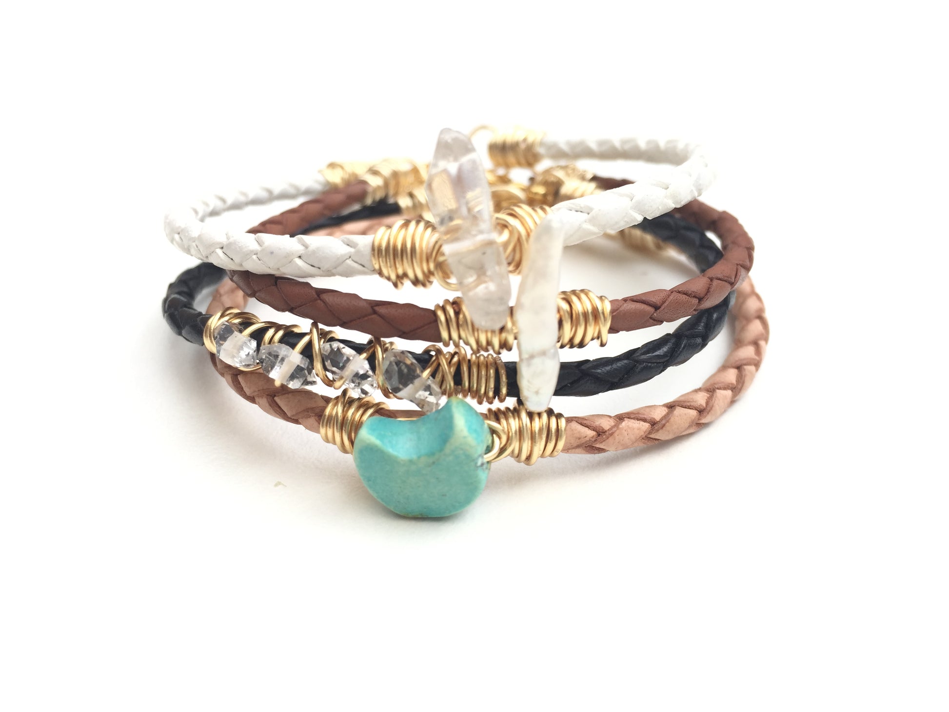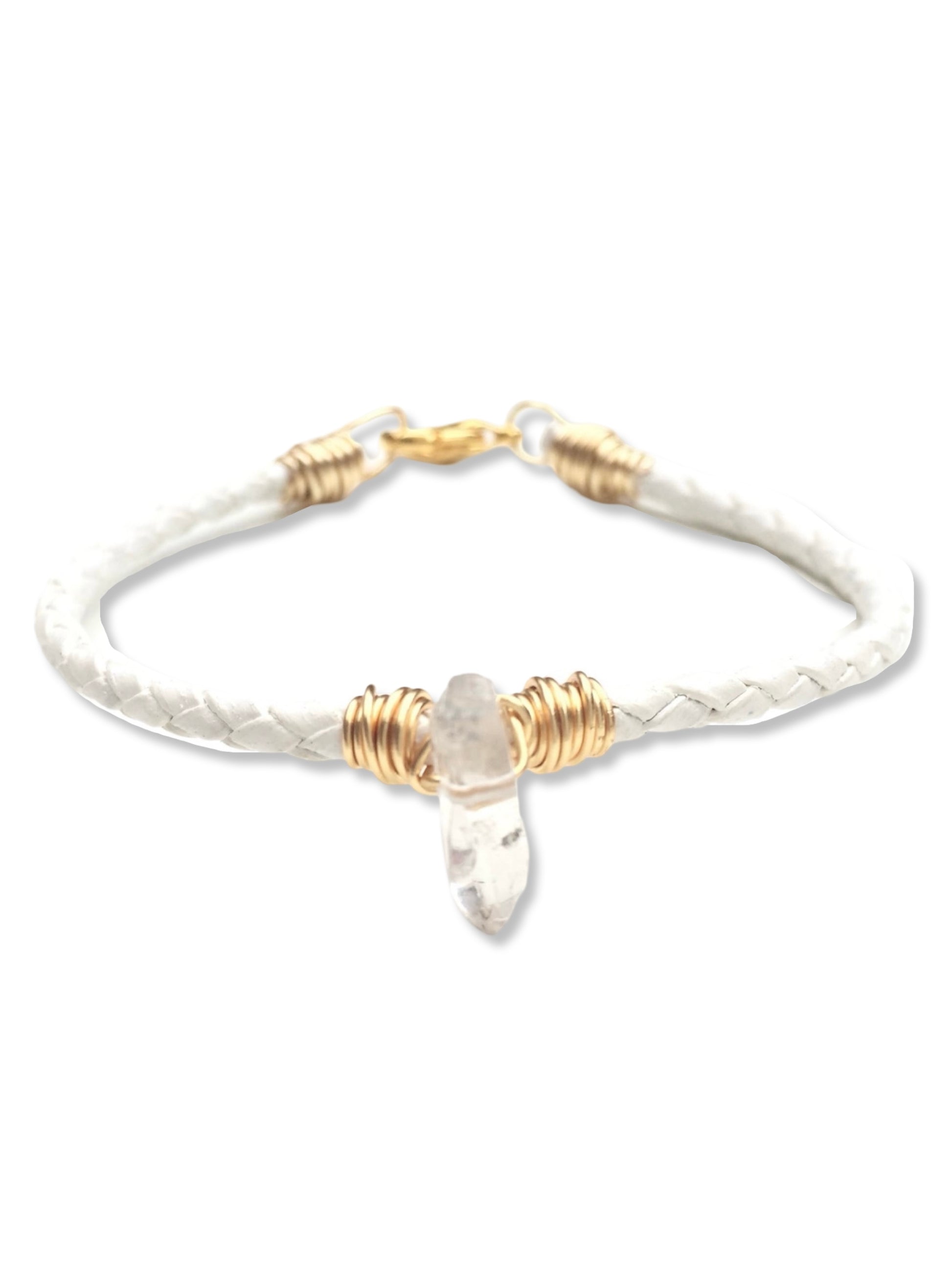 Himalayan quartz wrapped onto Italian bolo cord leather, fastened with a lobster clasp.