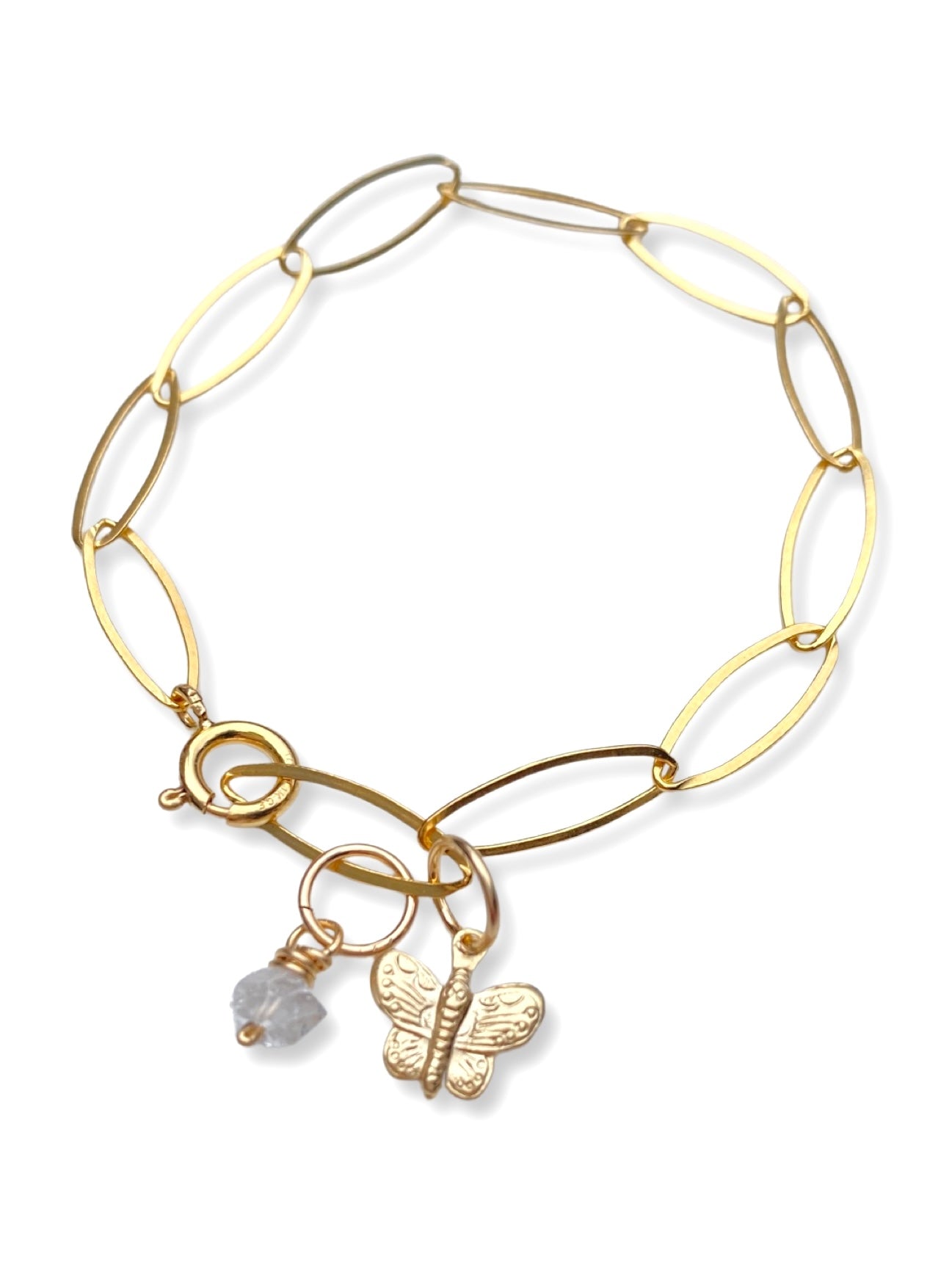 Charm Bracelet- Herkimer Diamond & Butterfly