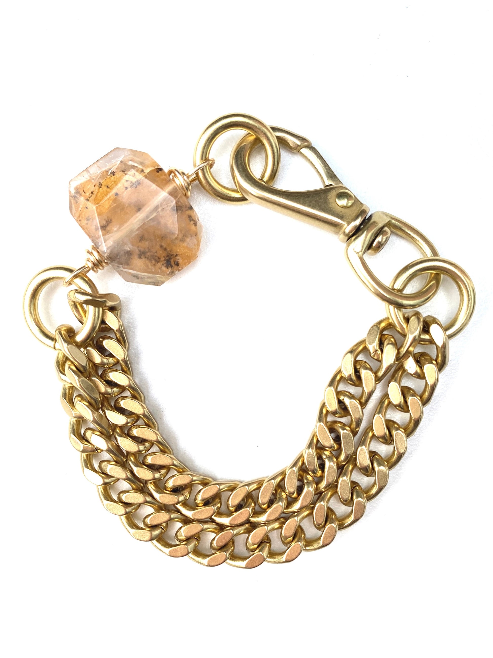 Chunky Brass Chain Bracelet- Rutilated Quartz