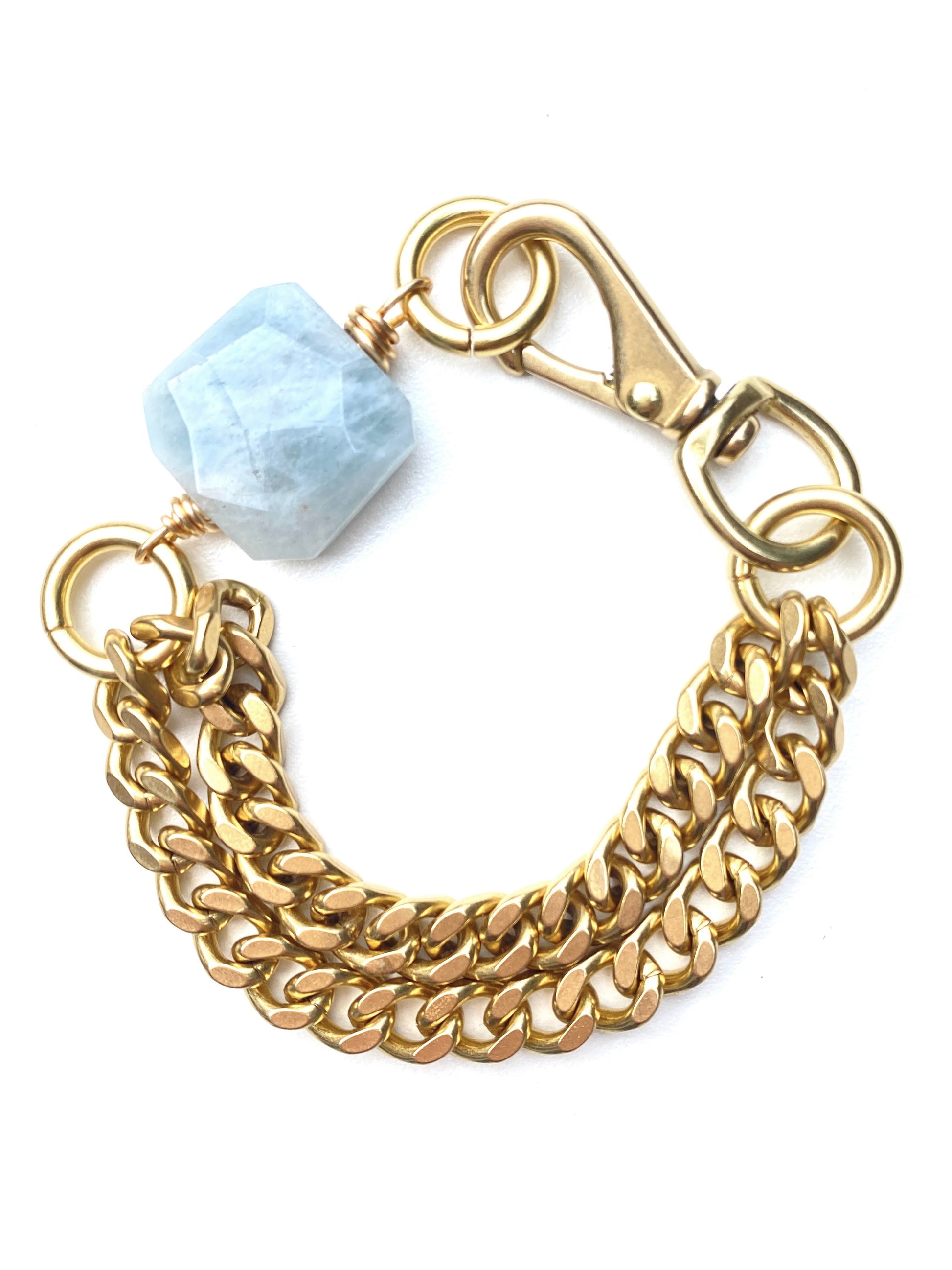 Chunky Brass Chain Bracelet- Blue Lace Agate