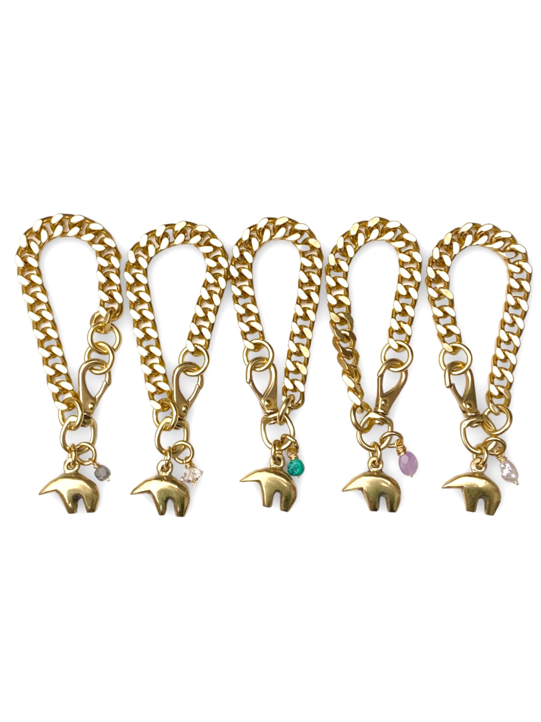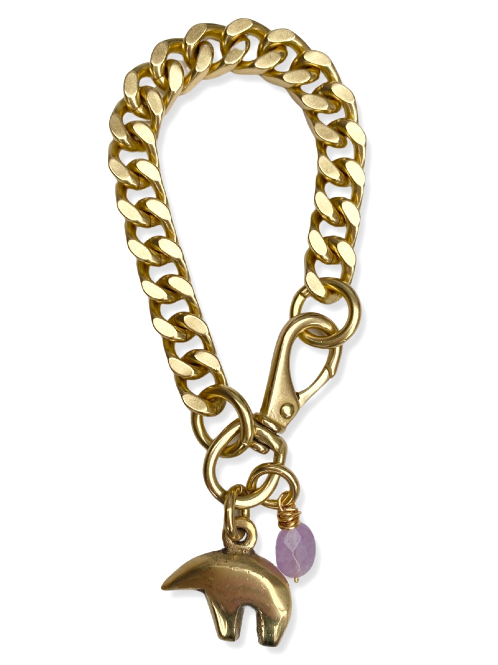 Chunky Brass Chain Bracelet- Curb Chain w/ Bear
