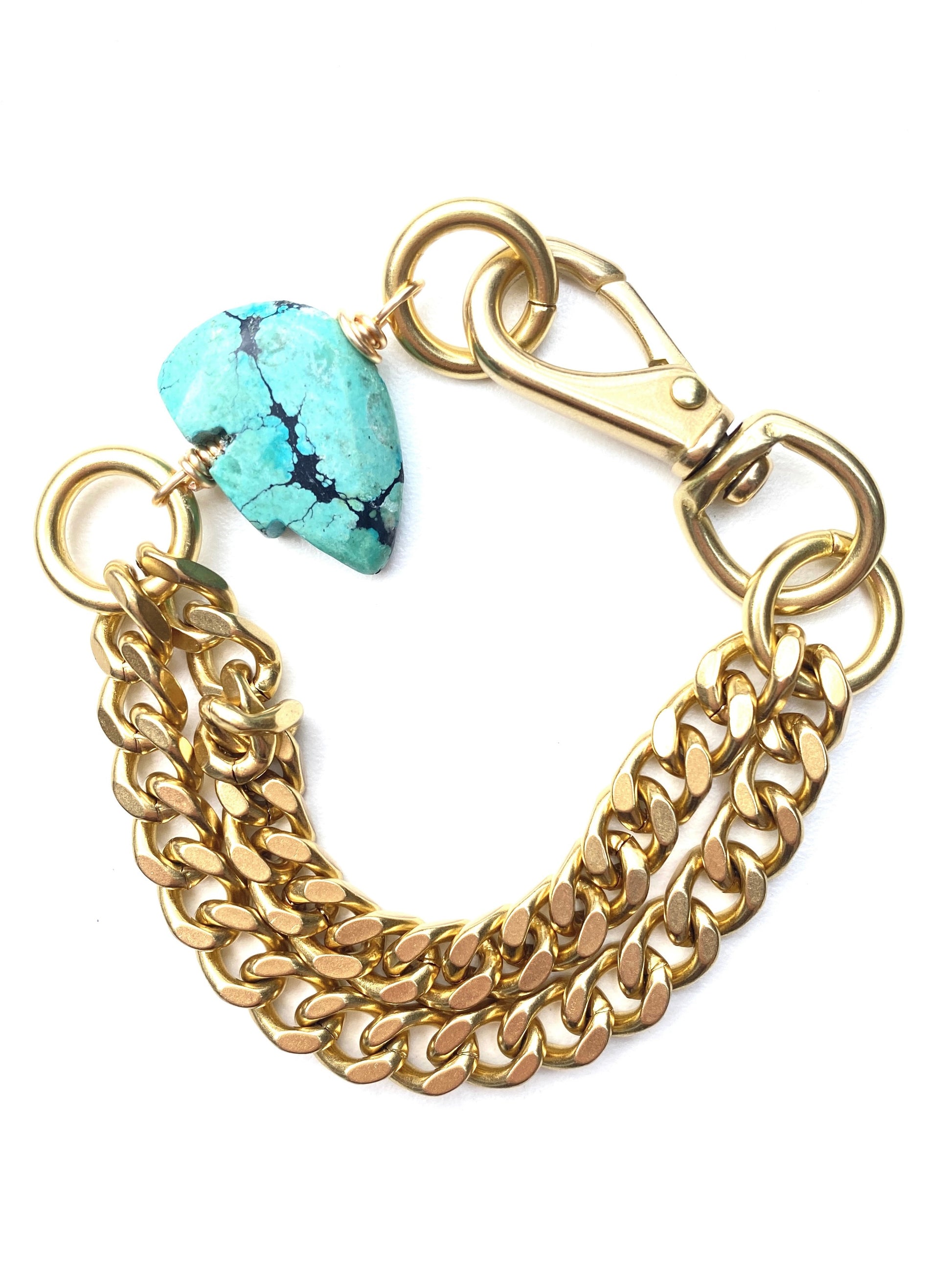 Chunky Brass Chain Bracelet- Turquoise