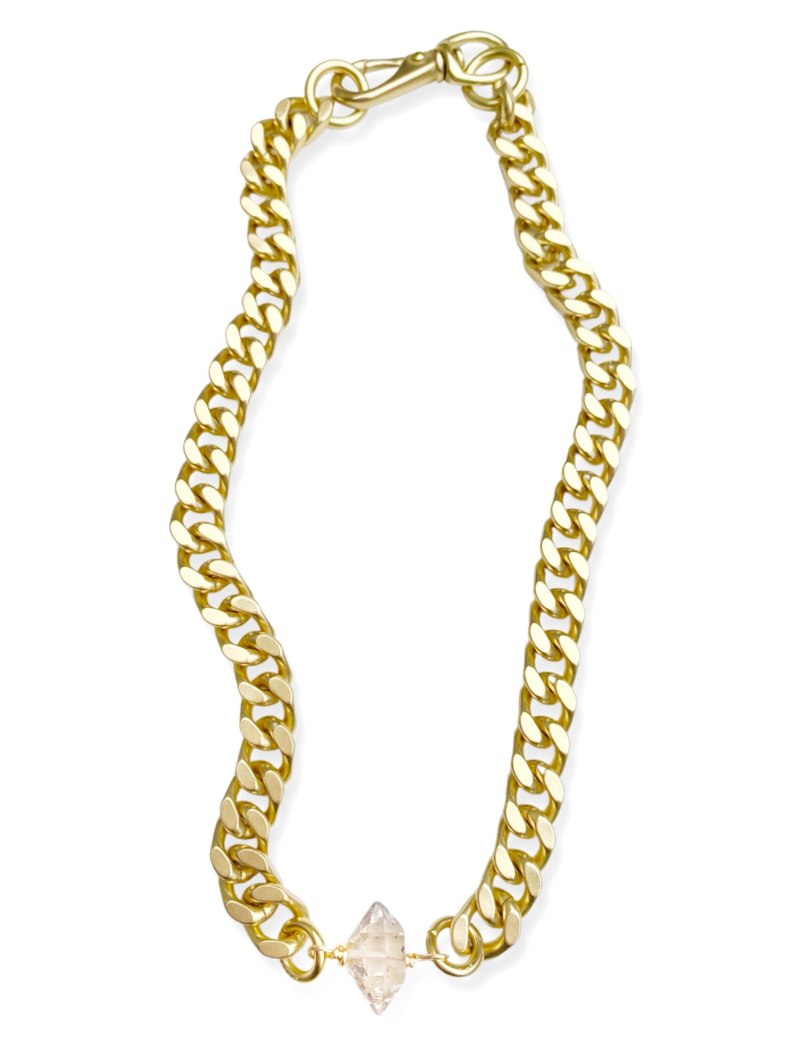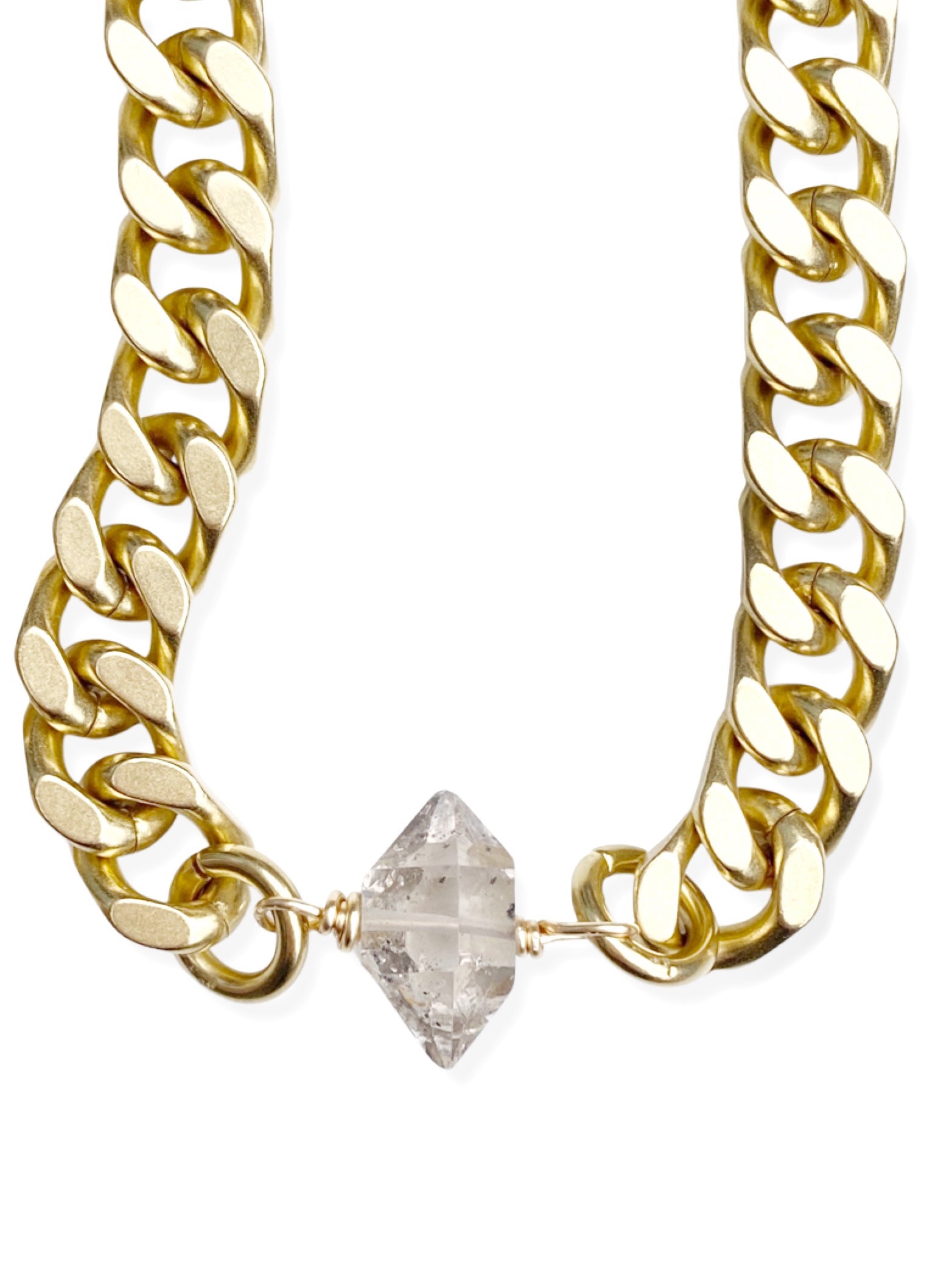 Chunky Brass Chain Necklace- Curb Chain w/ Herkimer Diamond