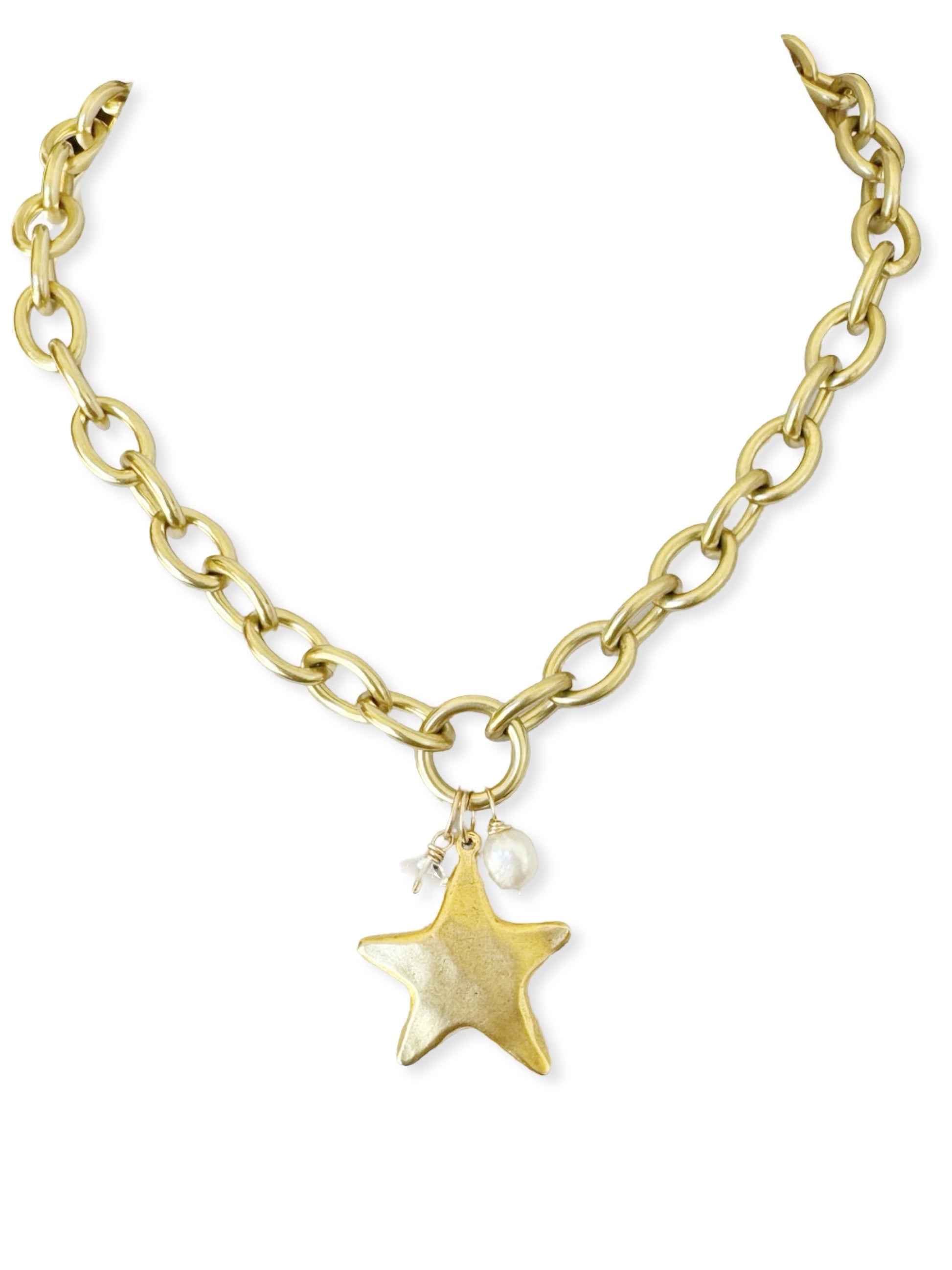 Chunky Brass Chain Necklace- Oval Chain w/ Star