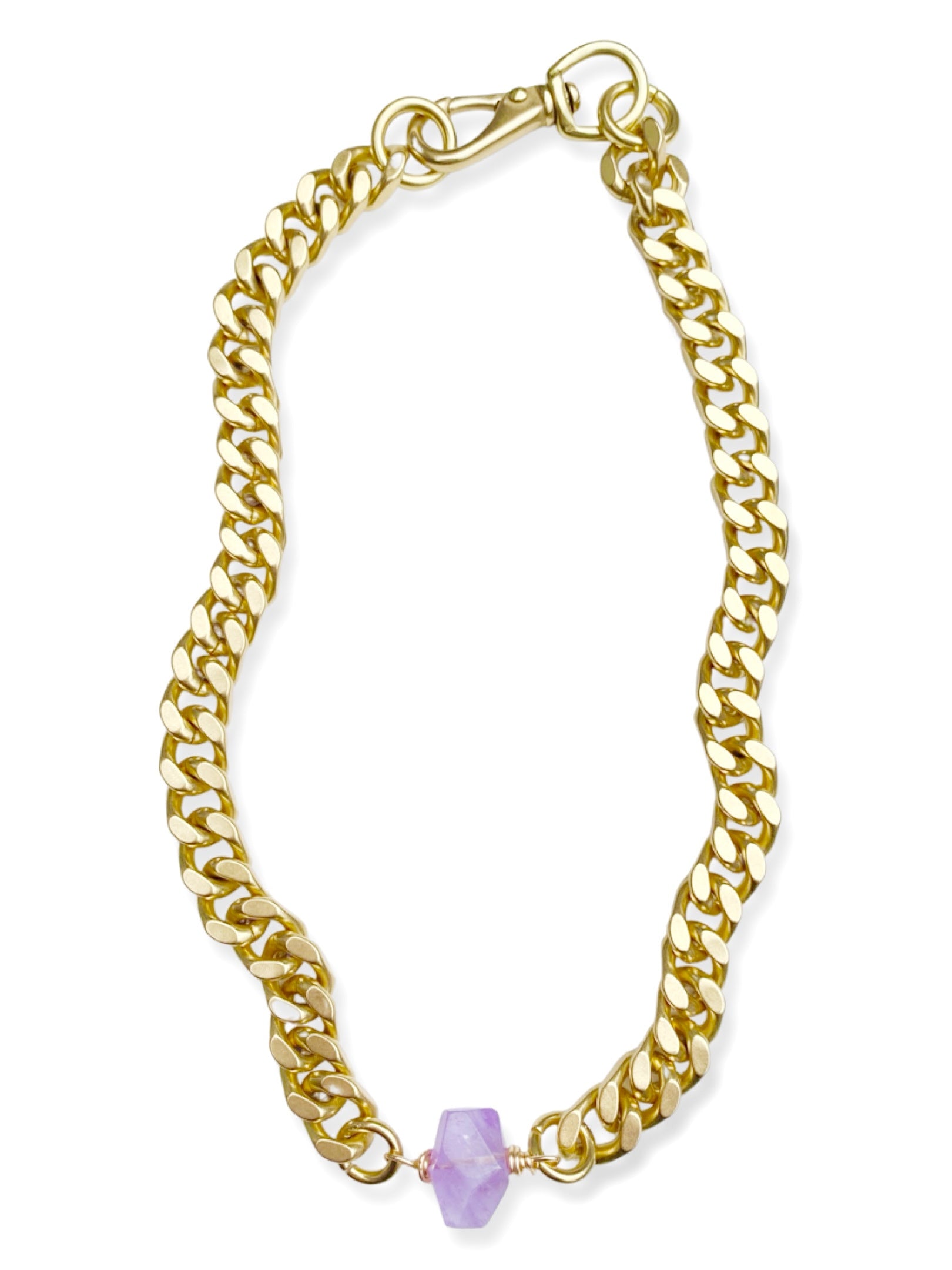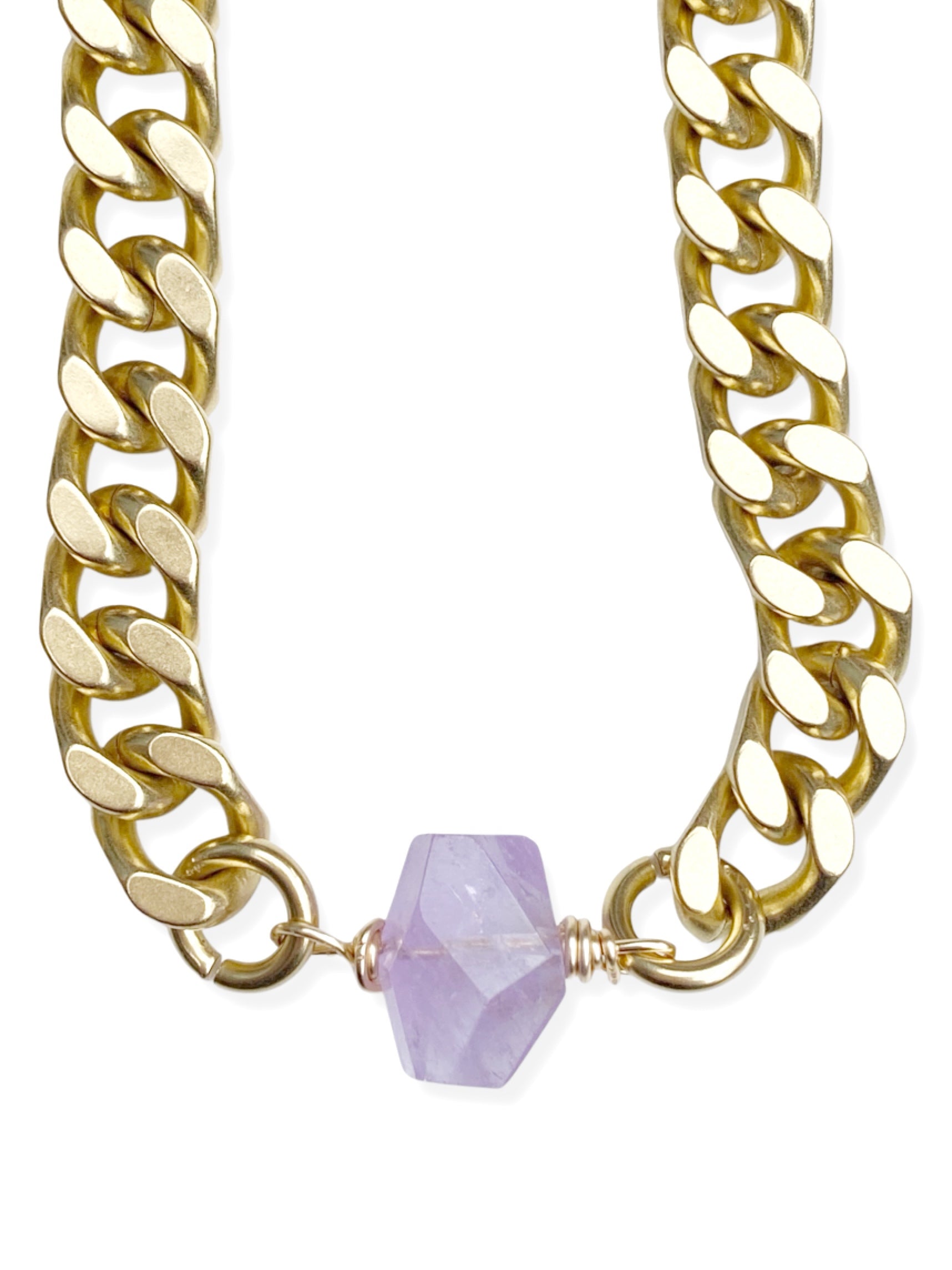 Chunky Brass Chain Necklace- Curb Chain w/ Amethyst