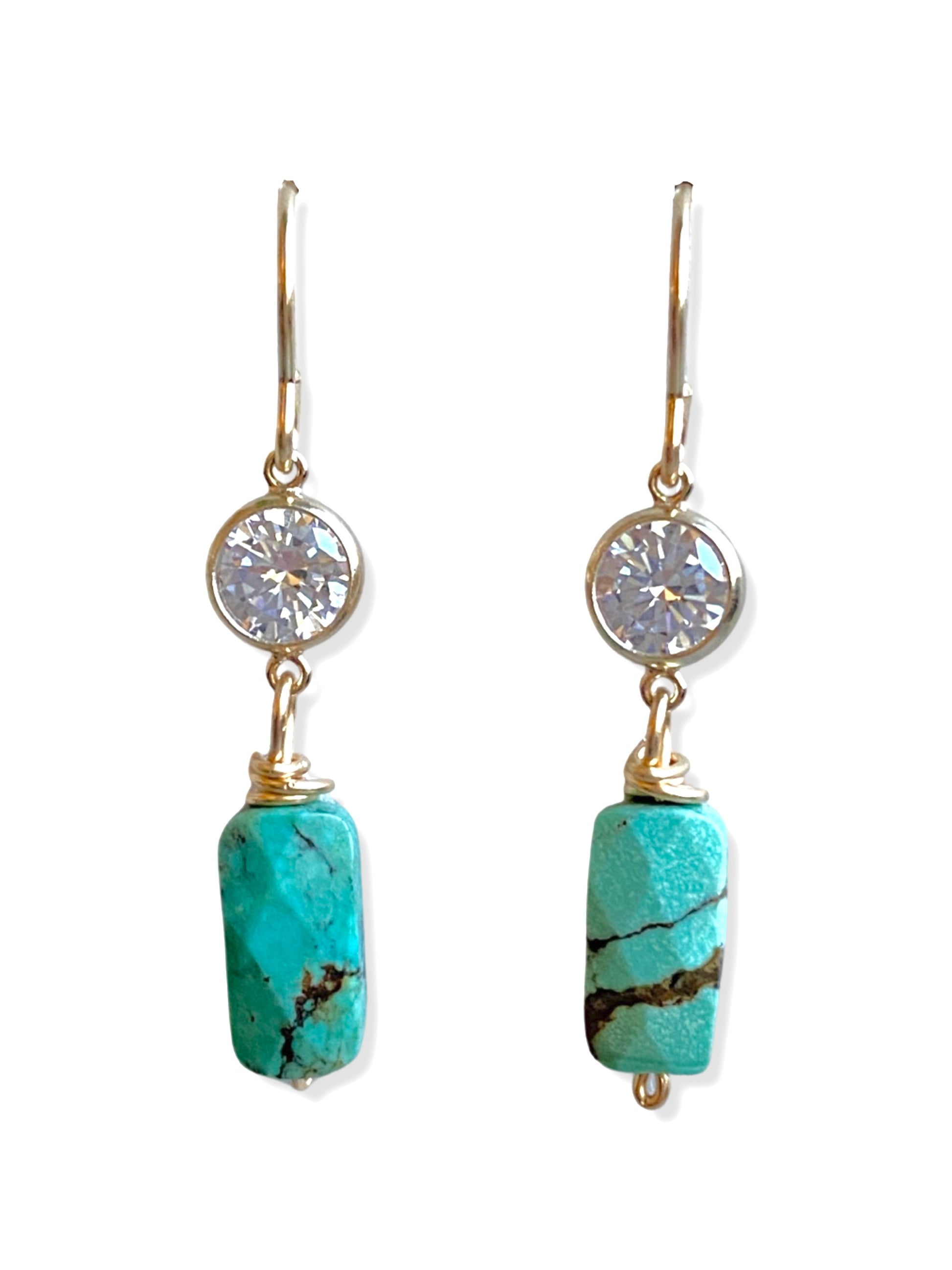 Turquoise hangs from a sparkling Cubic Zirconia.