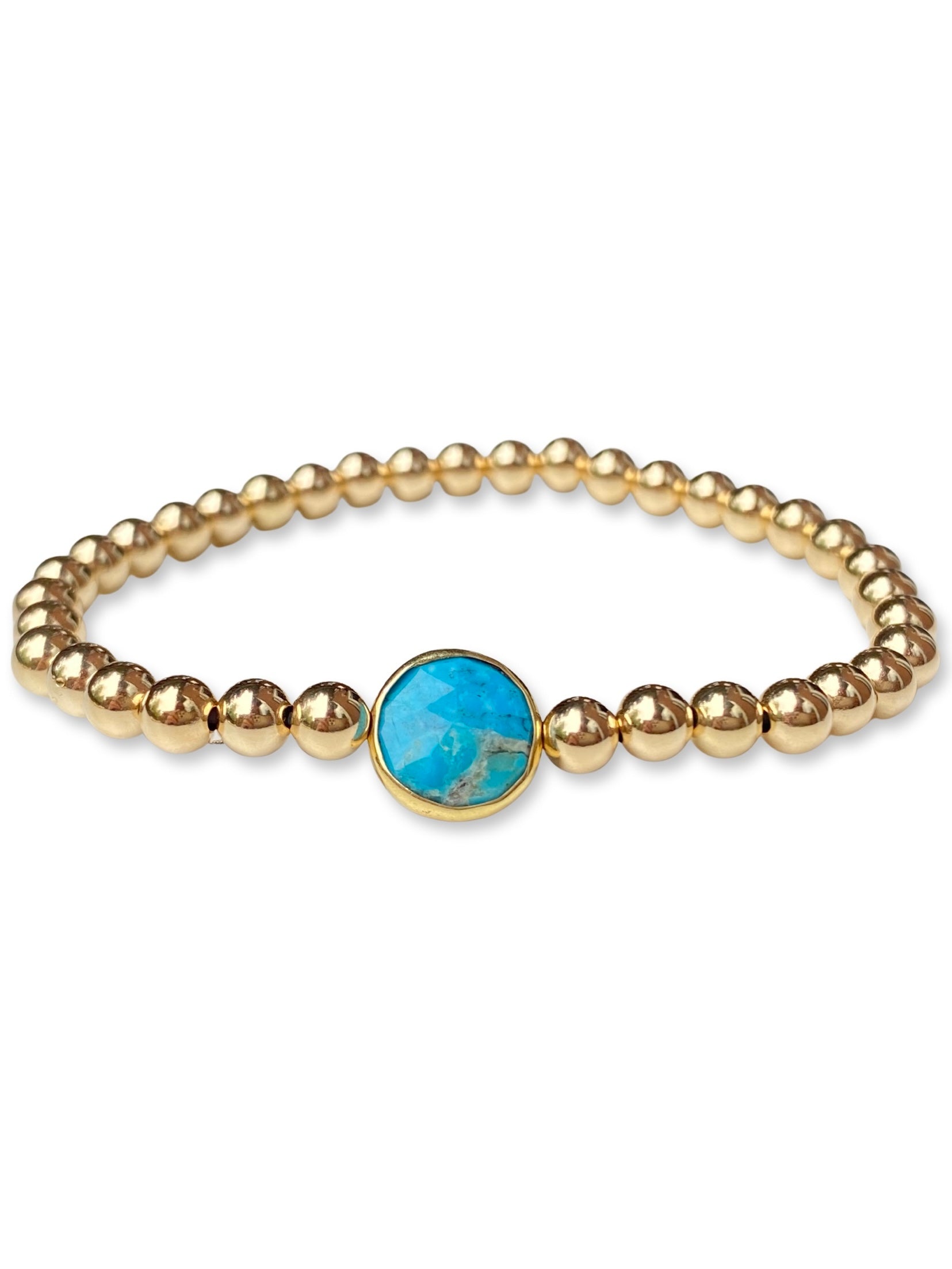 Beads are 5mm, 14k gold-filled on highly durable stretch cord.