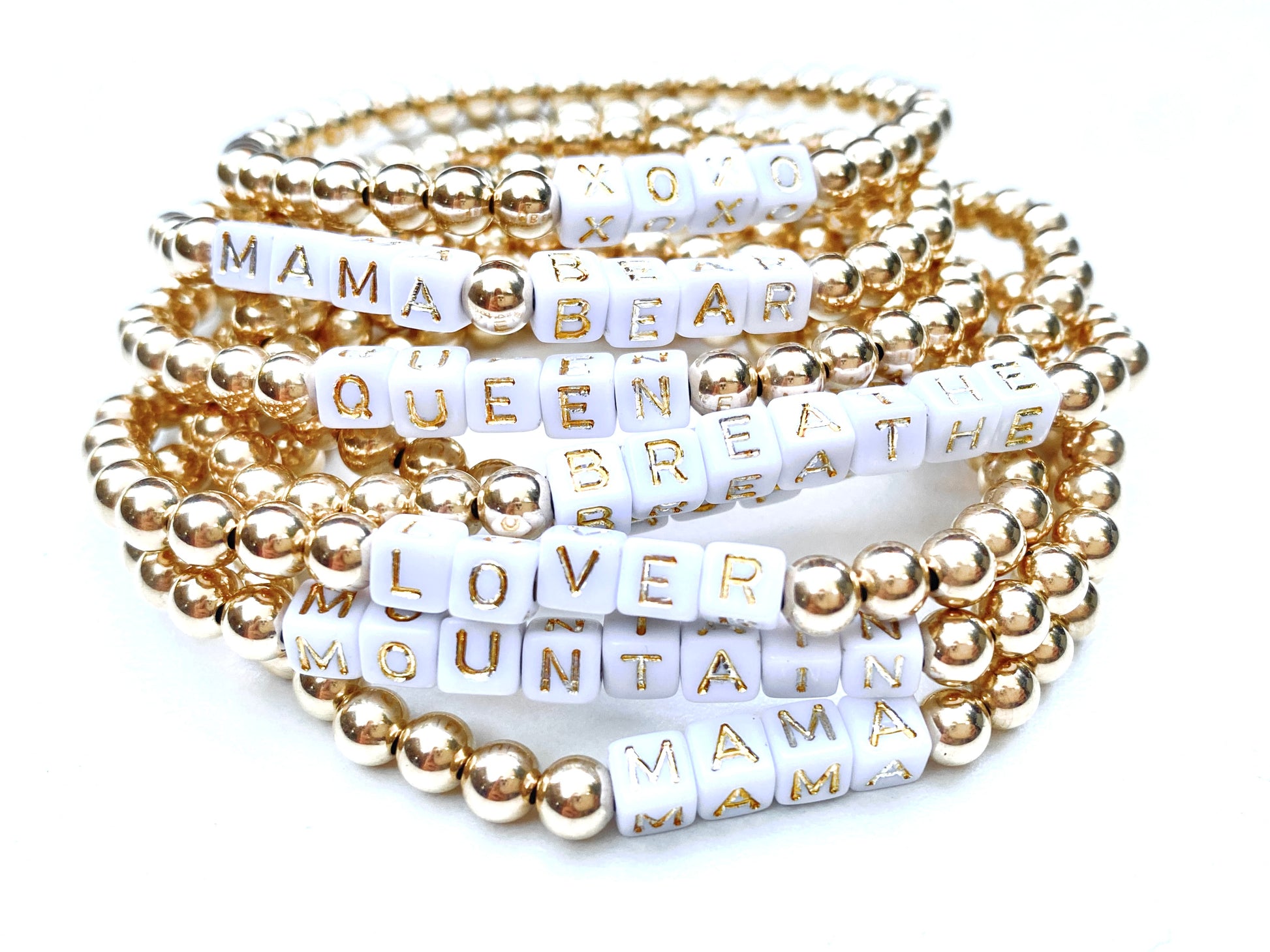 Beads are 5mm, 14k gold-filled on highly durable stretch cord.