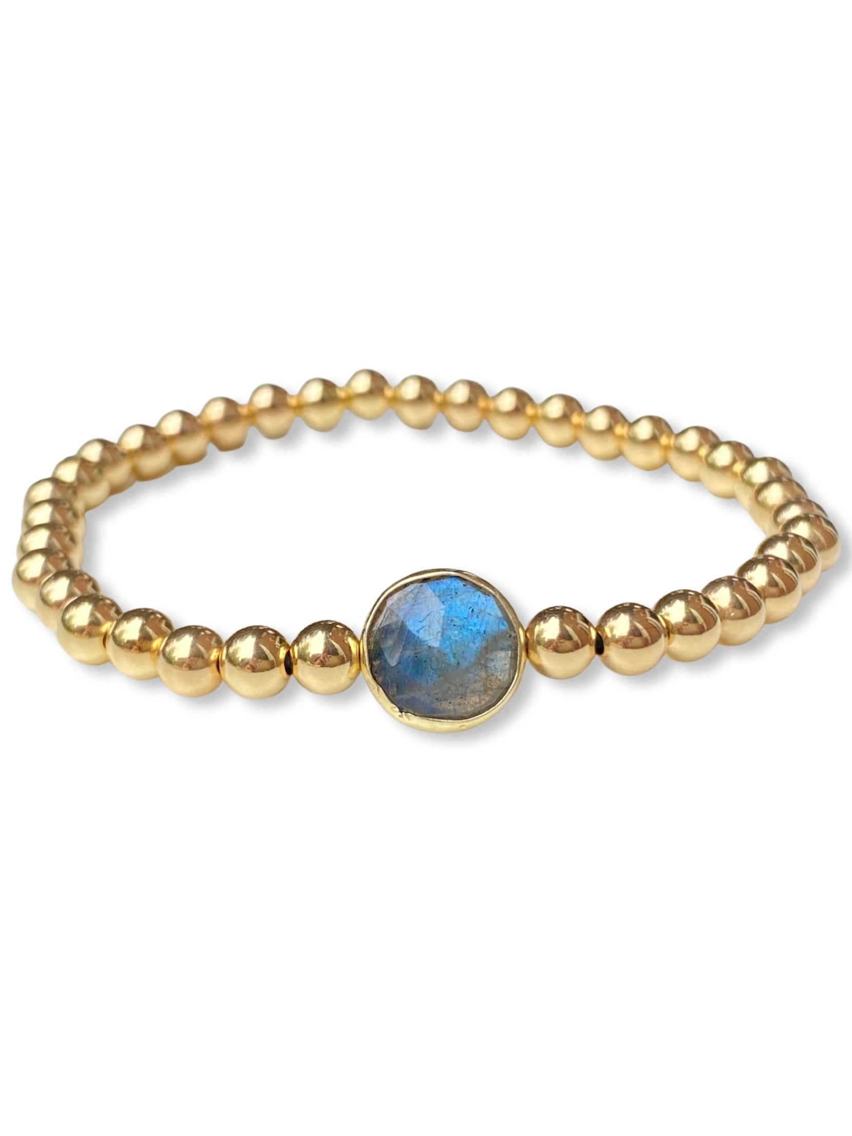 Beads are 5mm, 14k gold-filled on highly durable stretch cord.