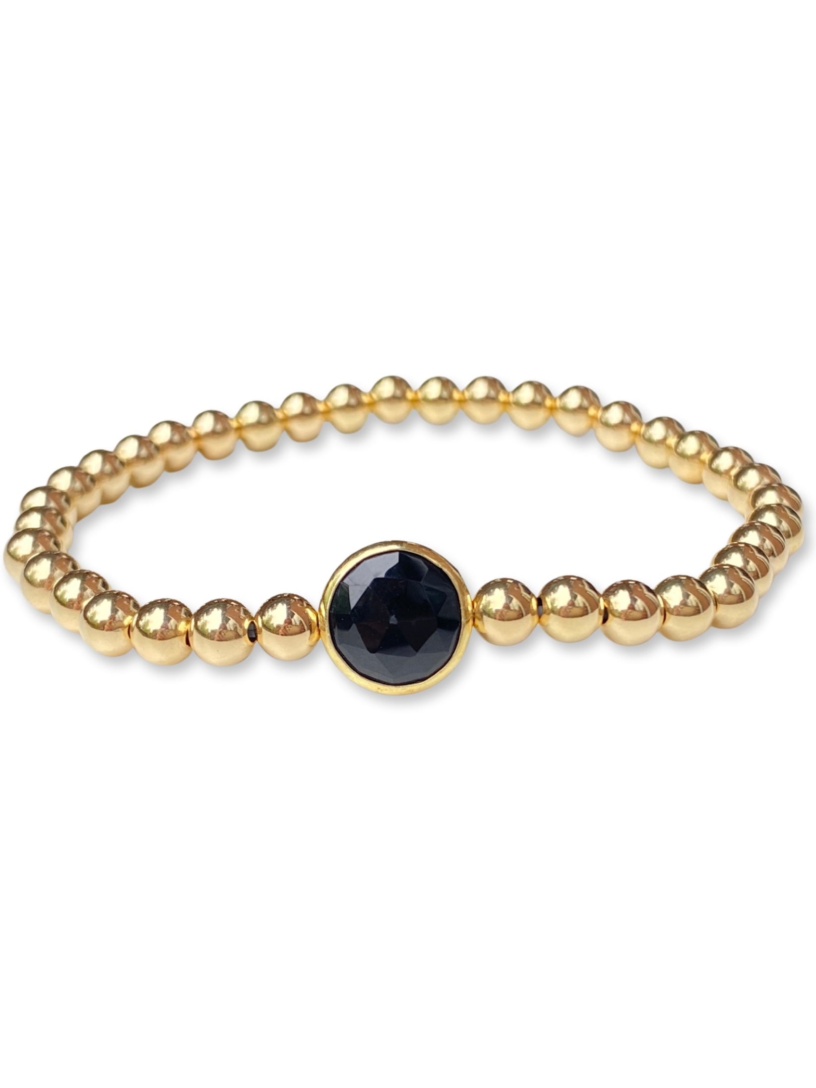 Beads are 5mm, 14k gold-filled on highly durable stretch cord.
