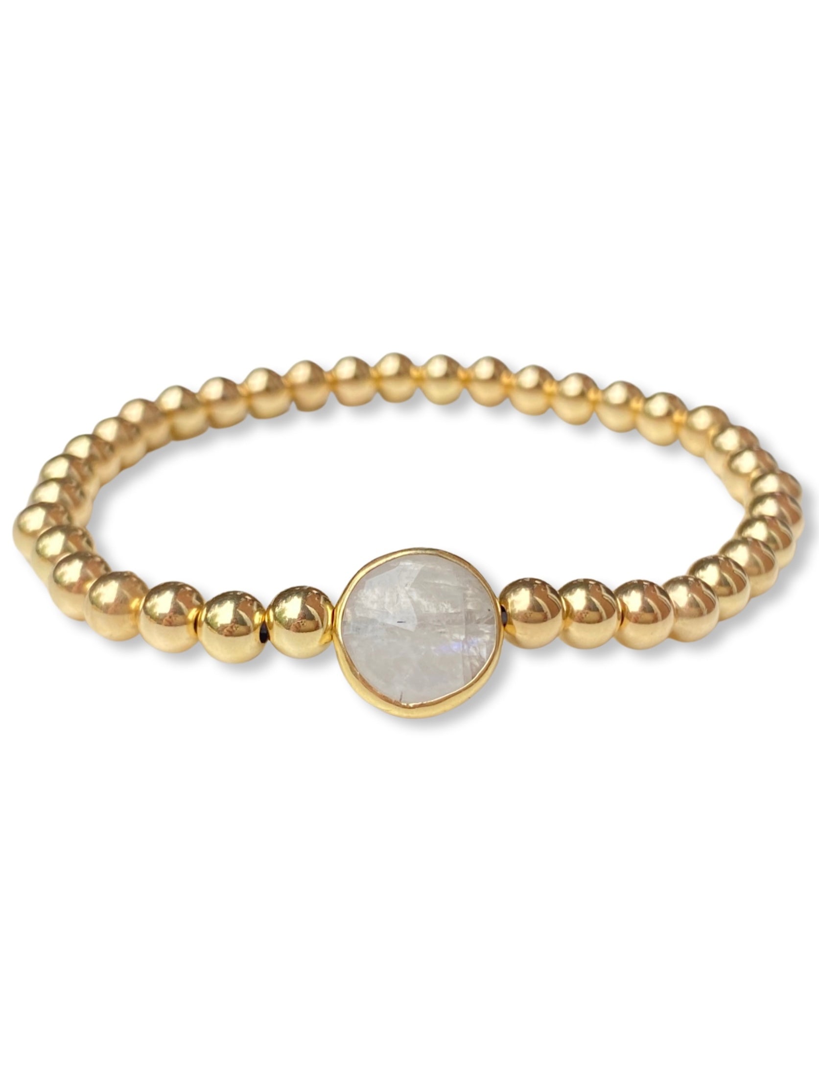 Beads are 5mm, 14k gold-filled on highly durable stretch cord.