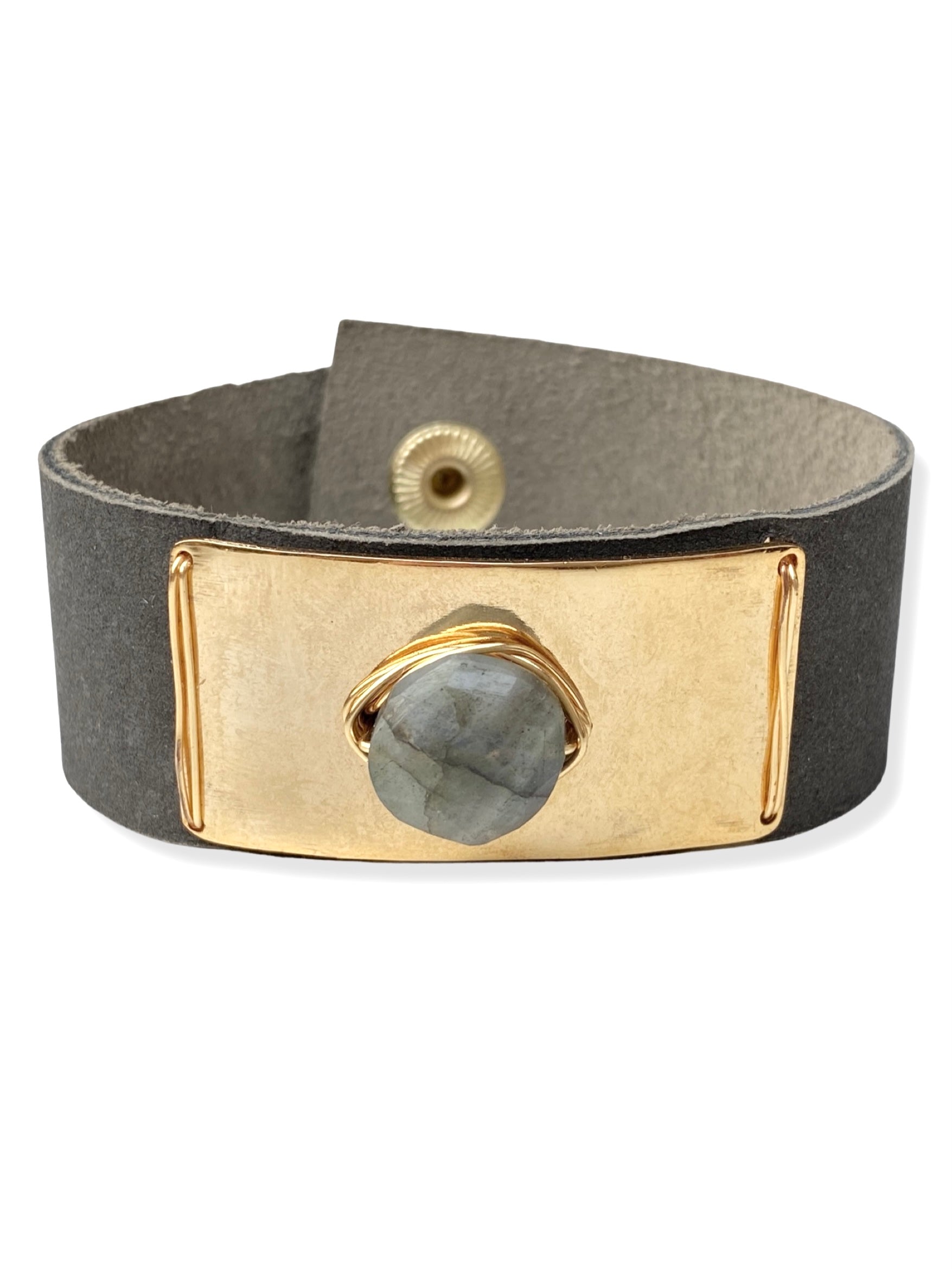 Gold Plate Snap- Charcoal Leather & Labradorite