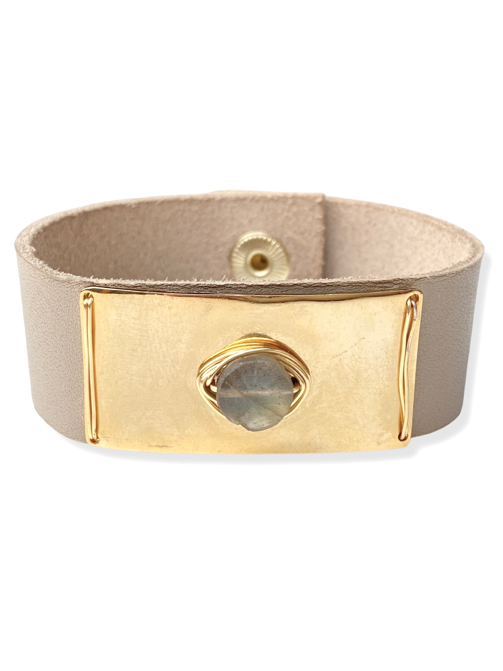 Gold Plate Snap- Taupe Leather & Labradorite