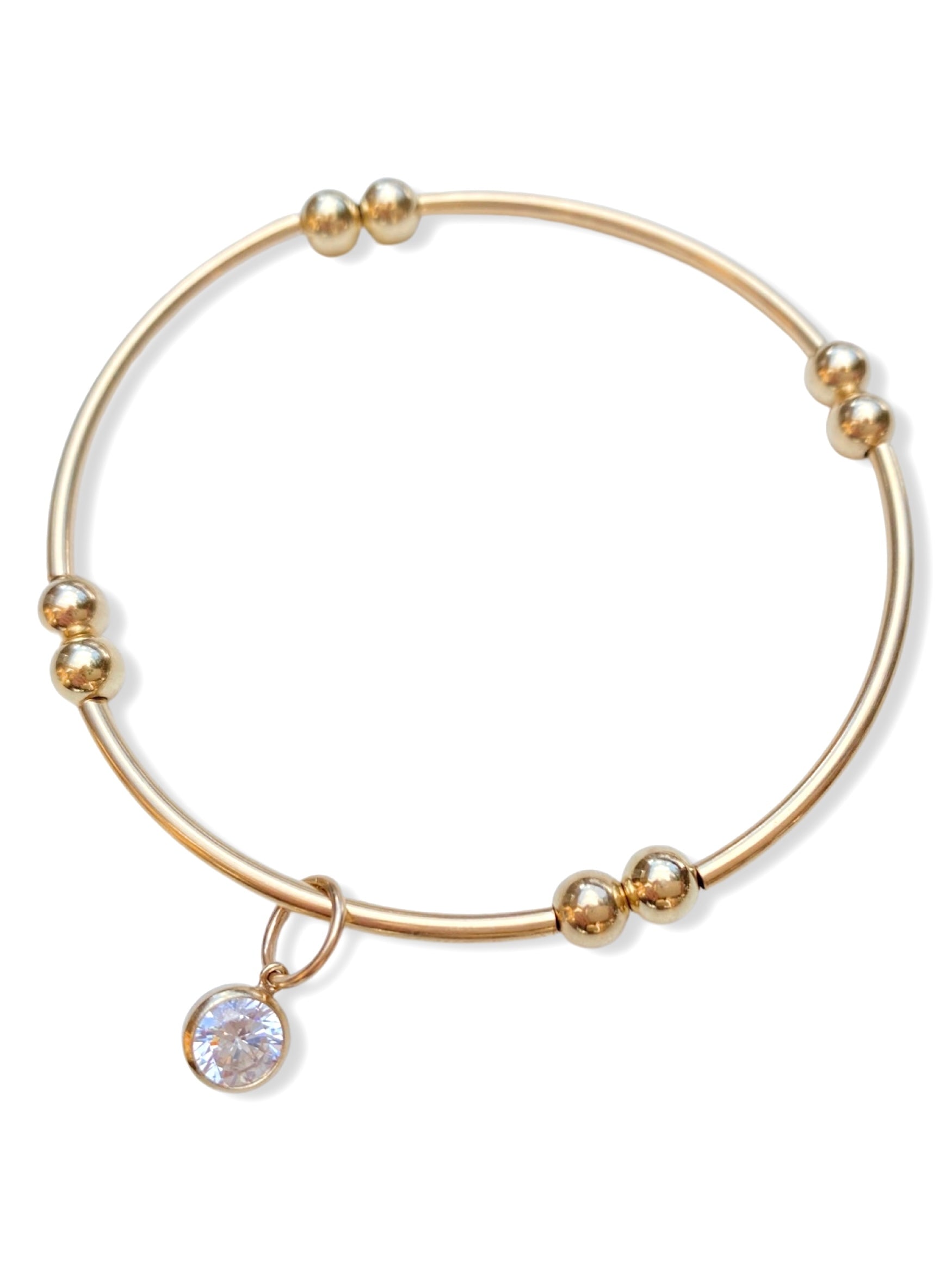 Gold Tube Charm Bracelet- Cubic Zirconia