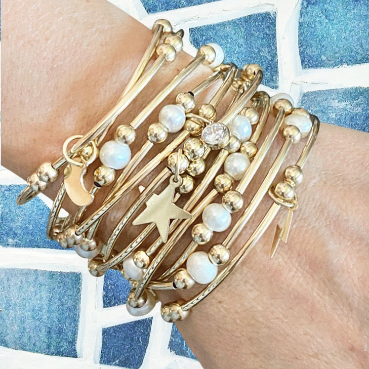 Gold Tube Charm Bracelet- Heart