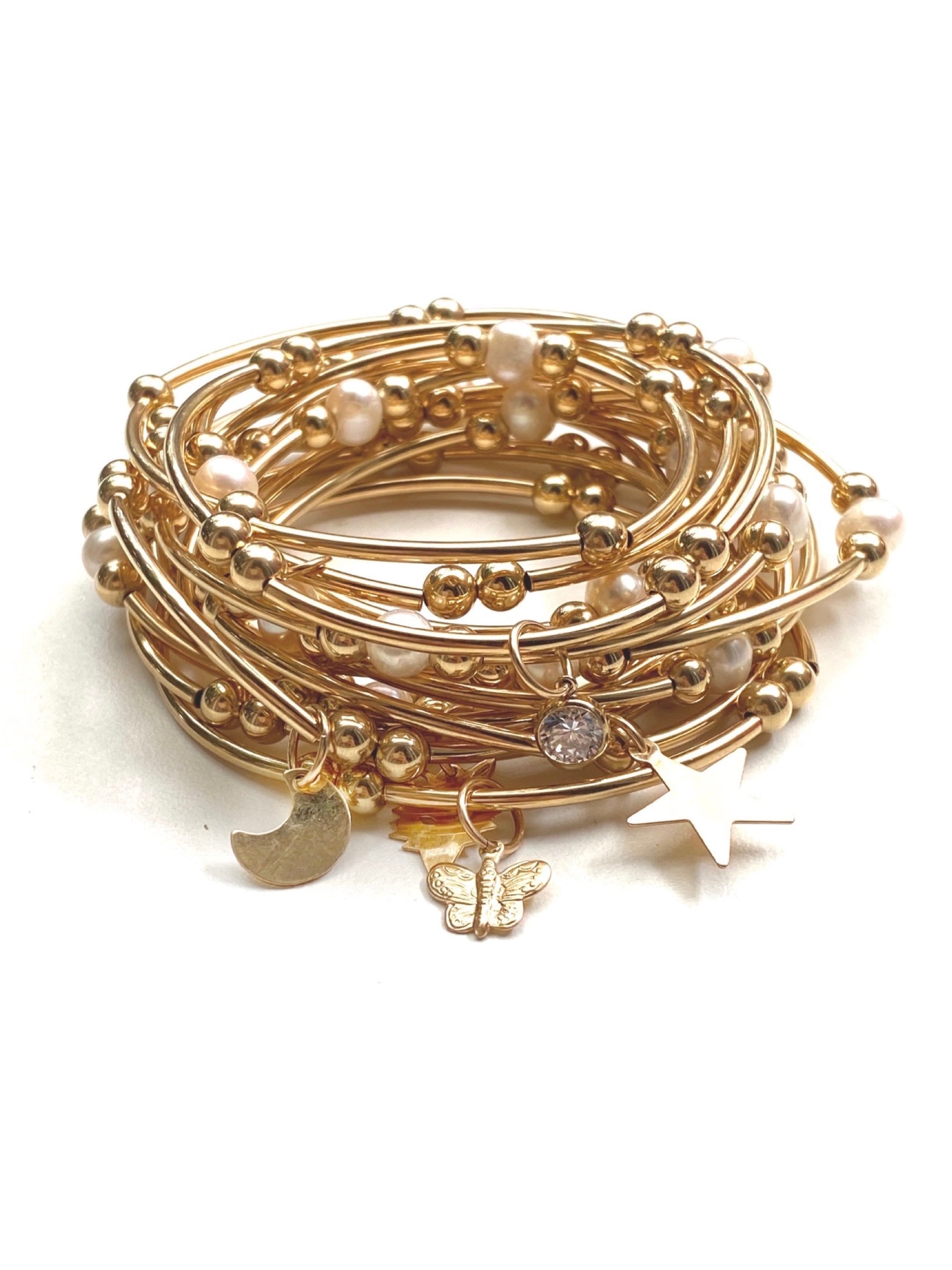 This bracelet looks like a bangle, but is in fact a stretch bracelet.