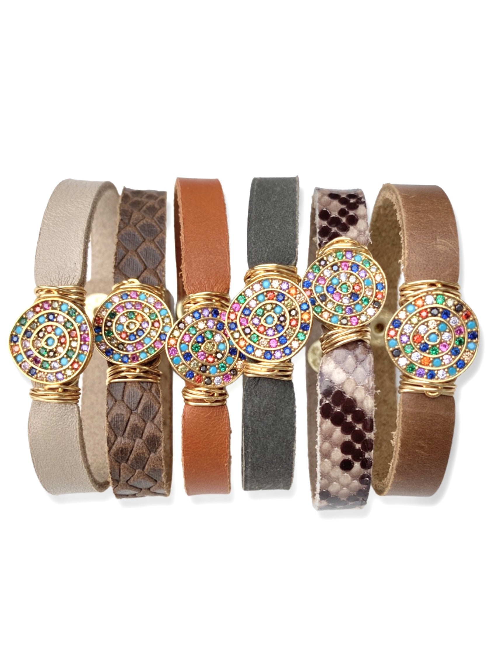 Leather Pave Stacker- Rainbow