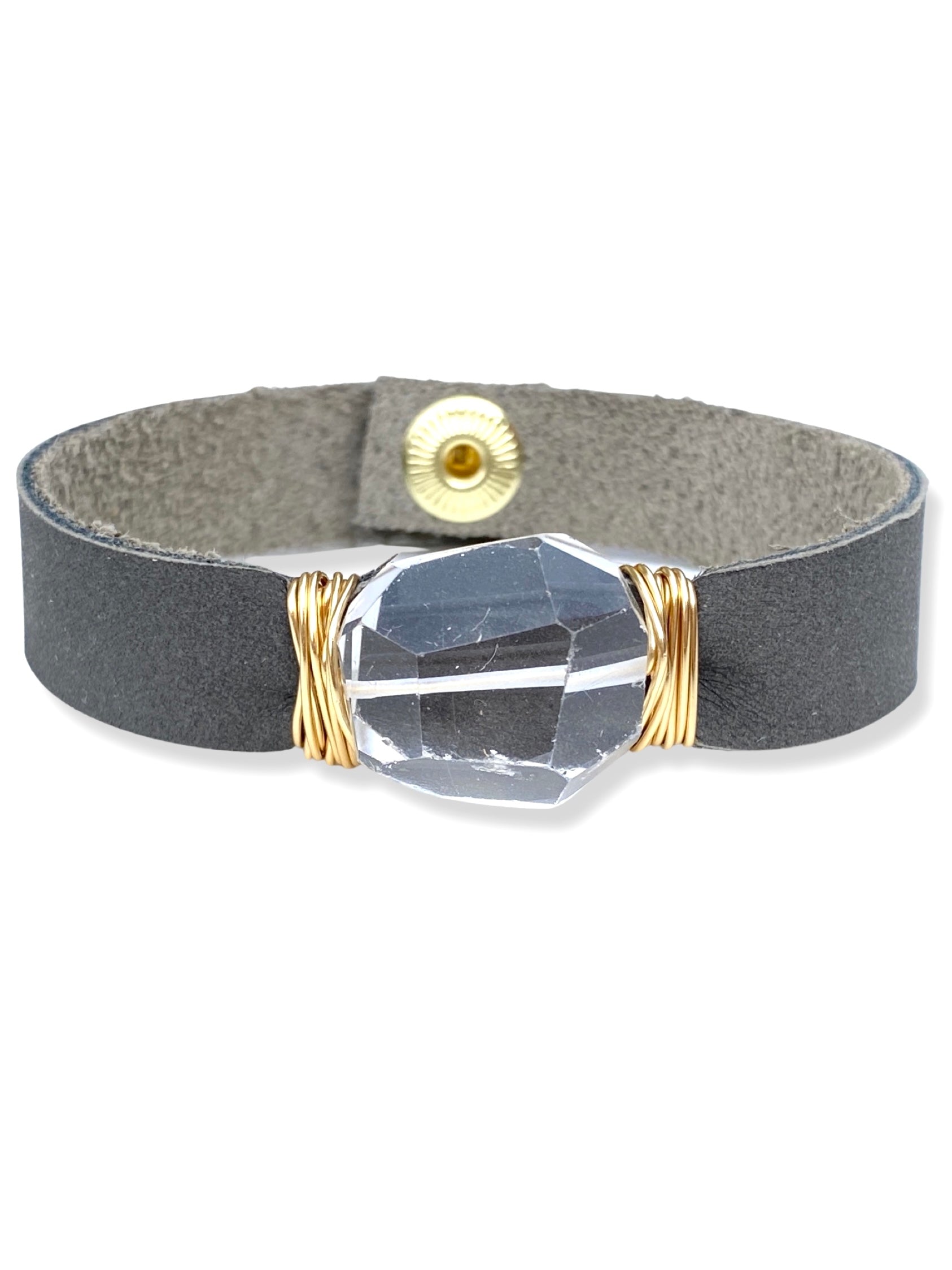 Leather Snap Bracelet- Quartz