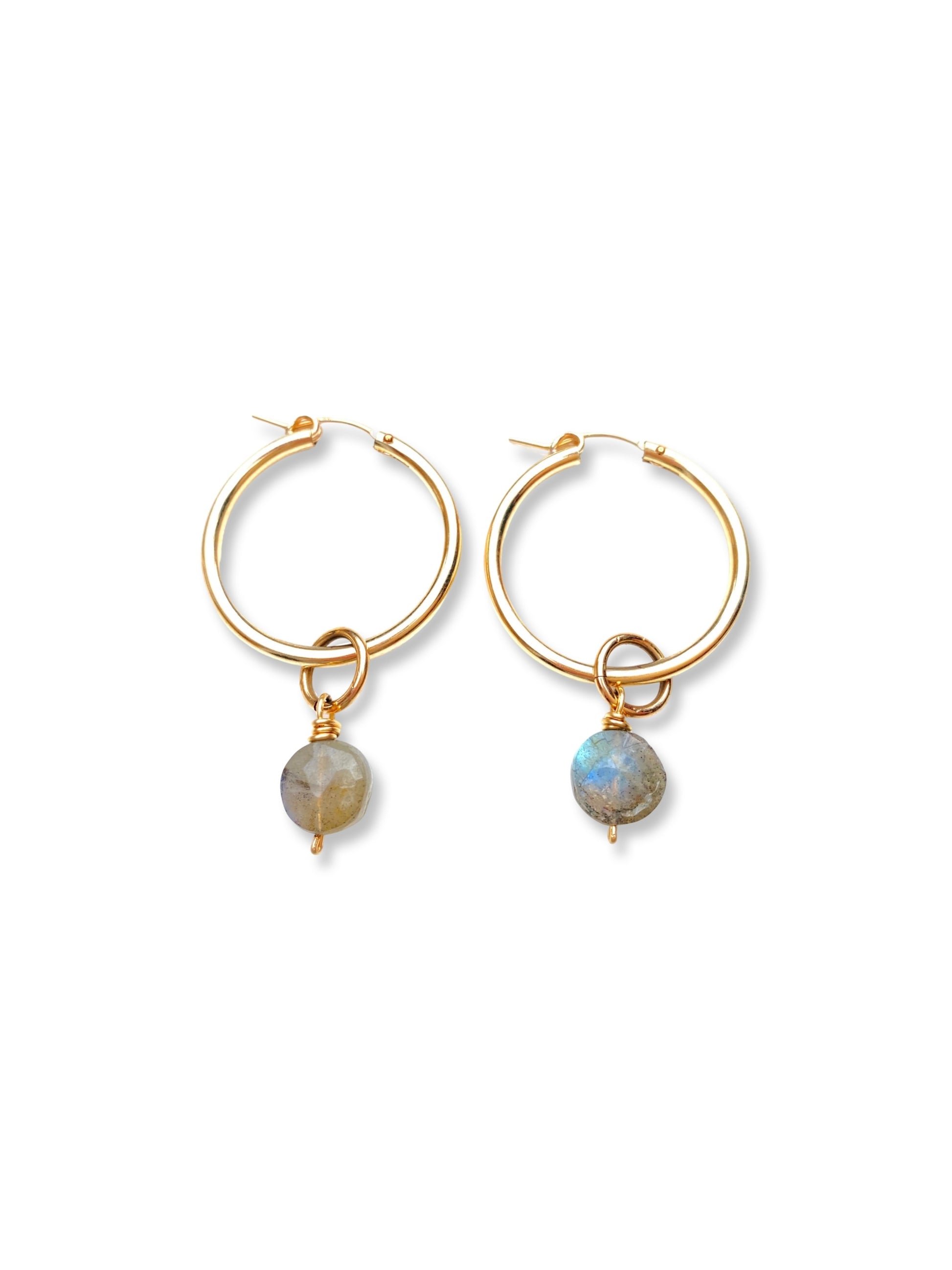 The stones on these hoops slide off so the hoops can also be worn plain.