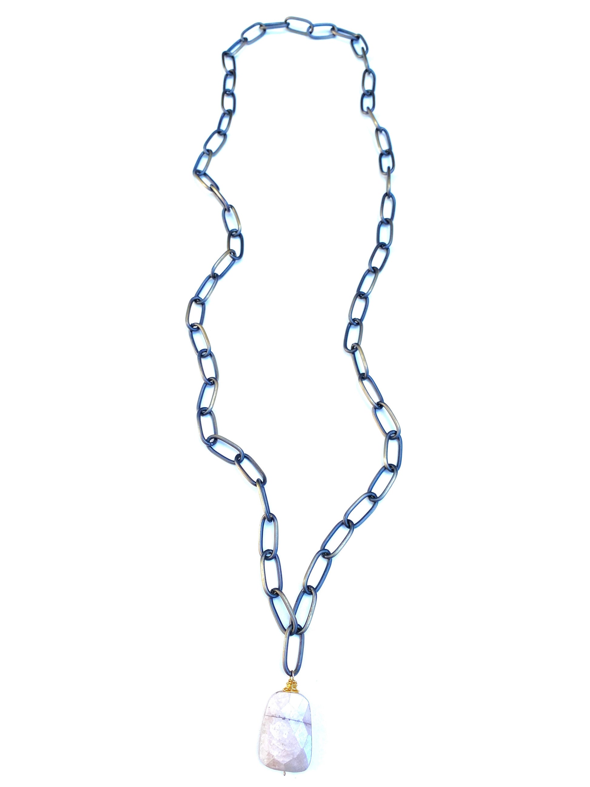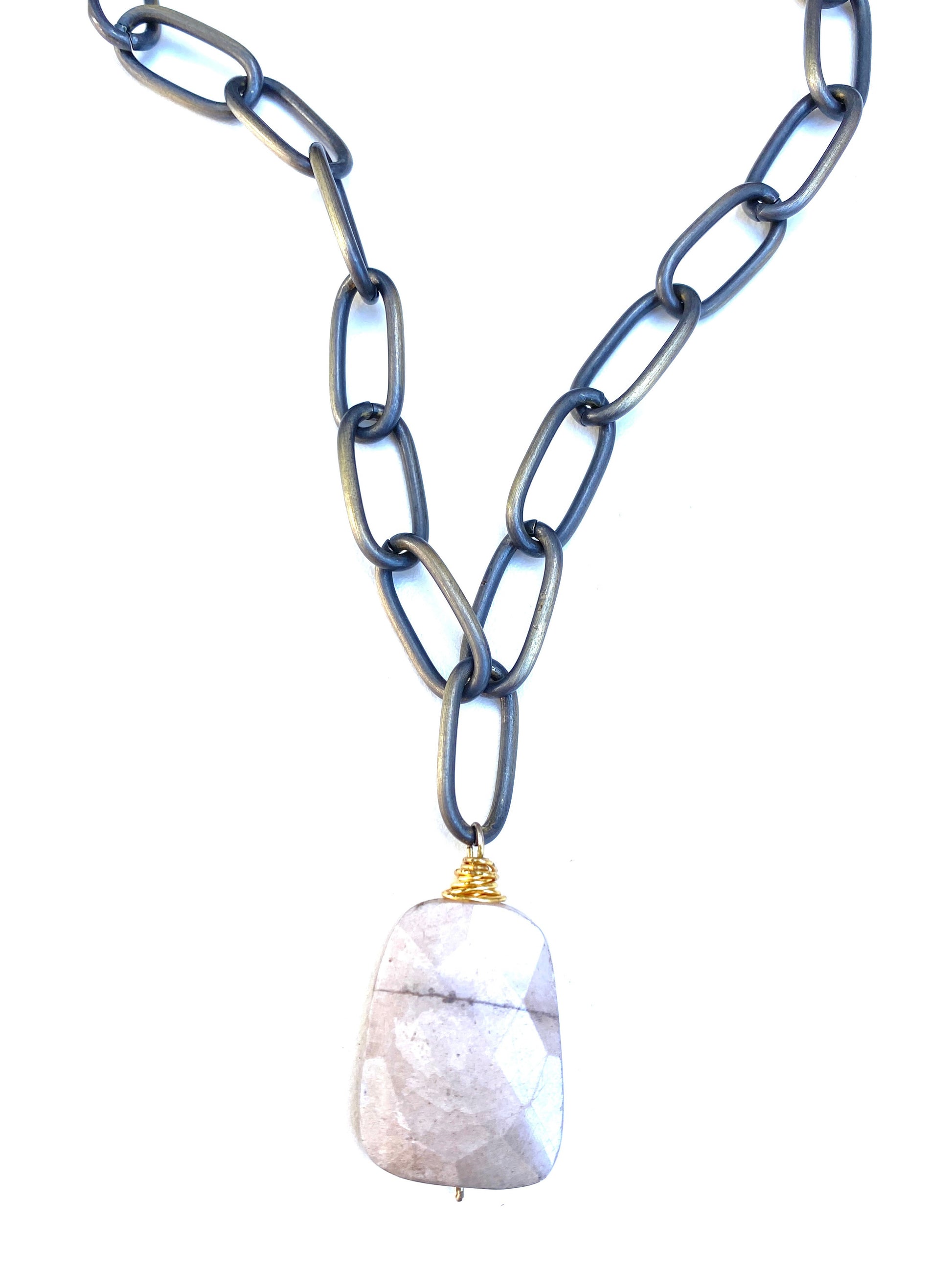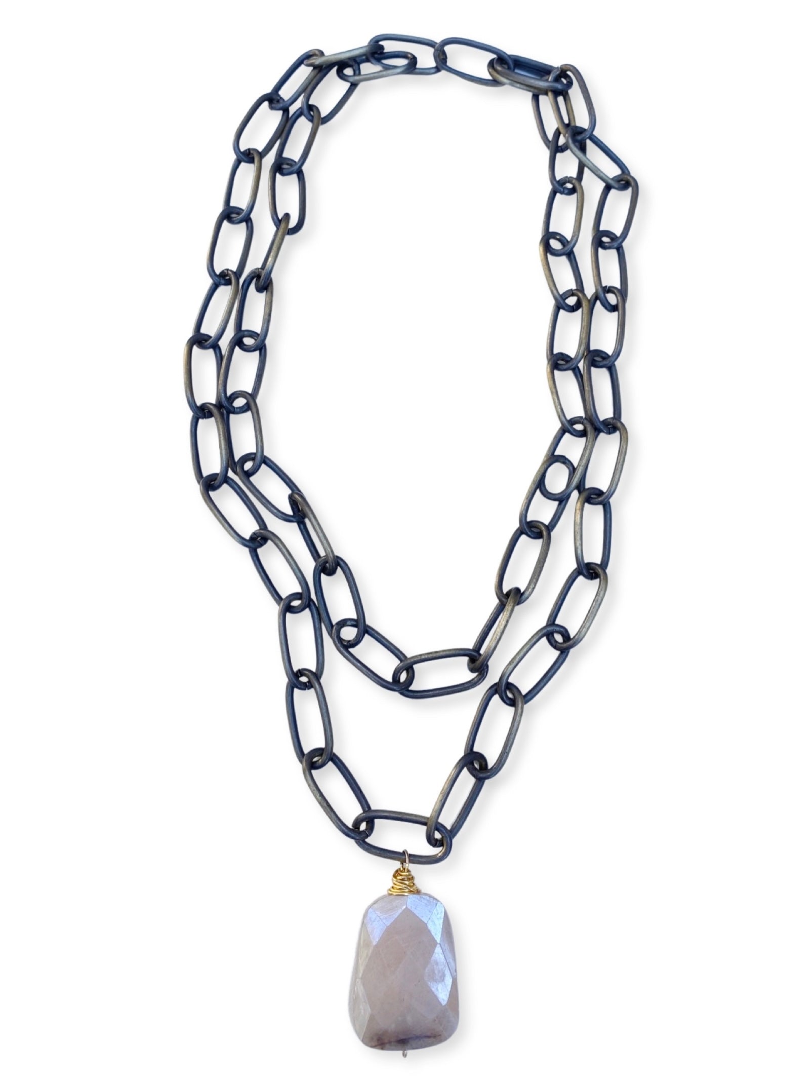 This show stopping necklace has antiqued brass chain with a gorgeous piece of moonstone.