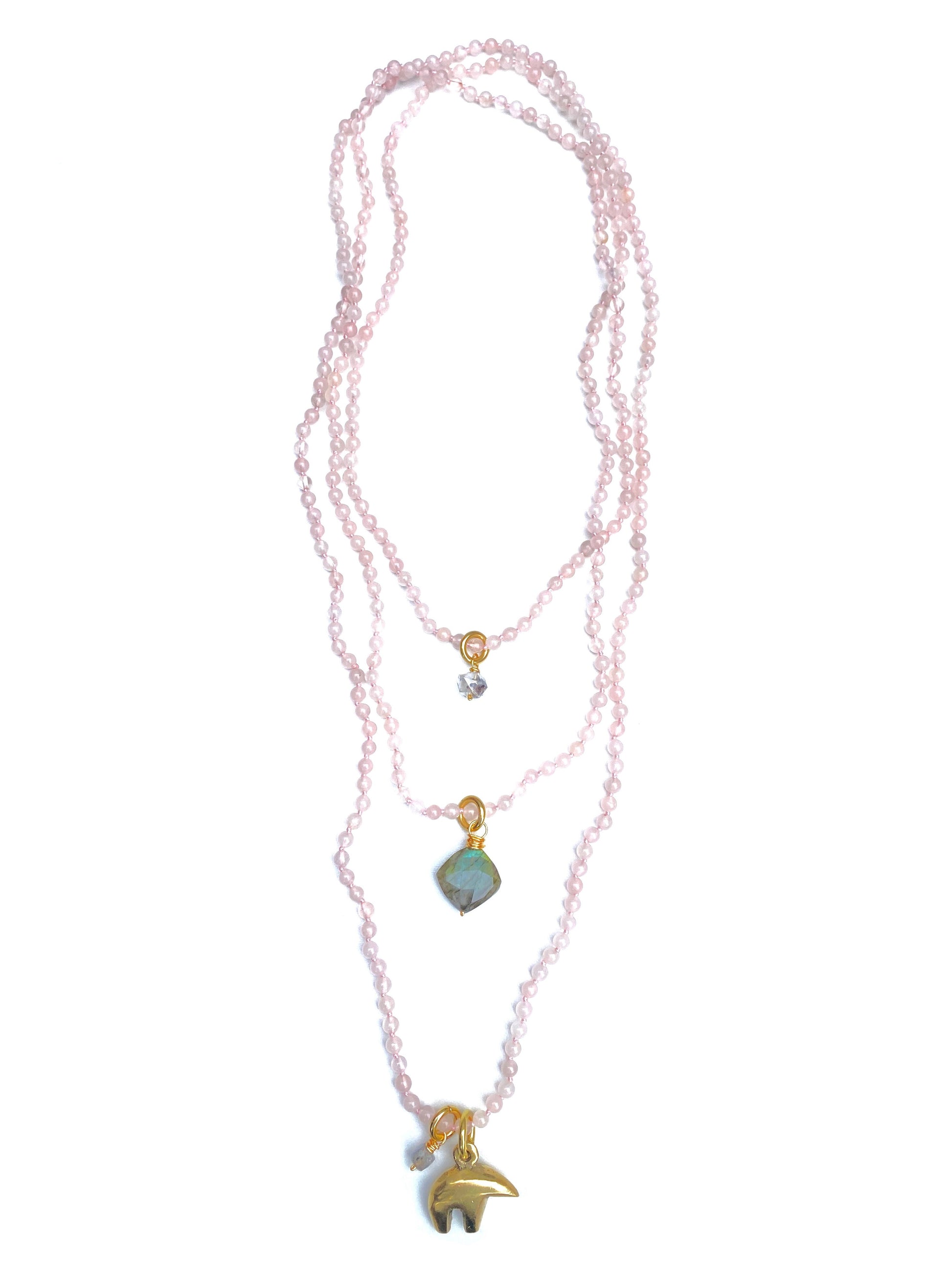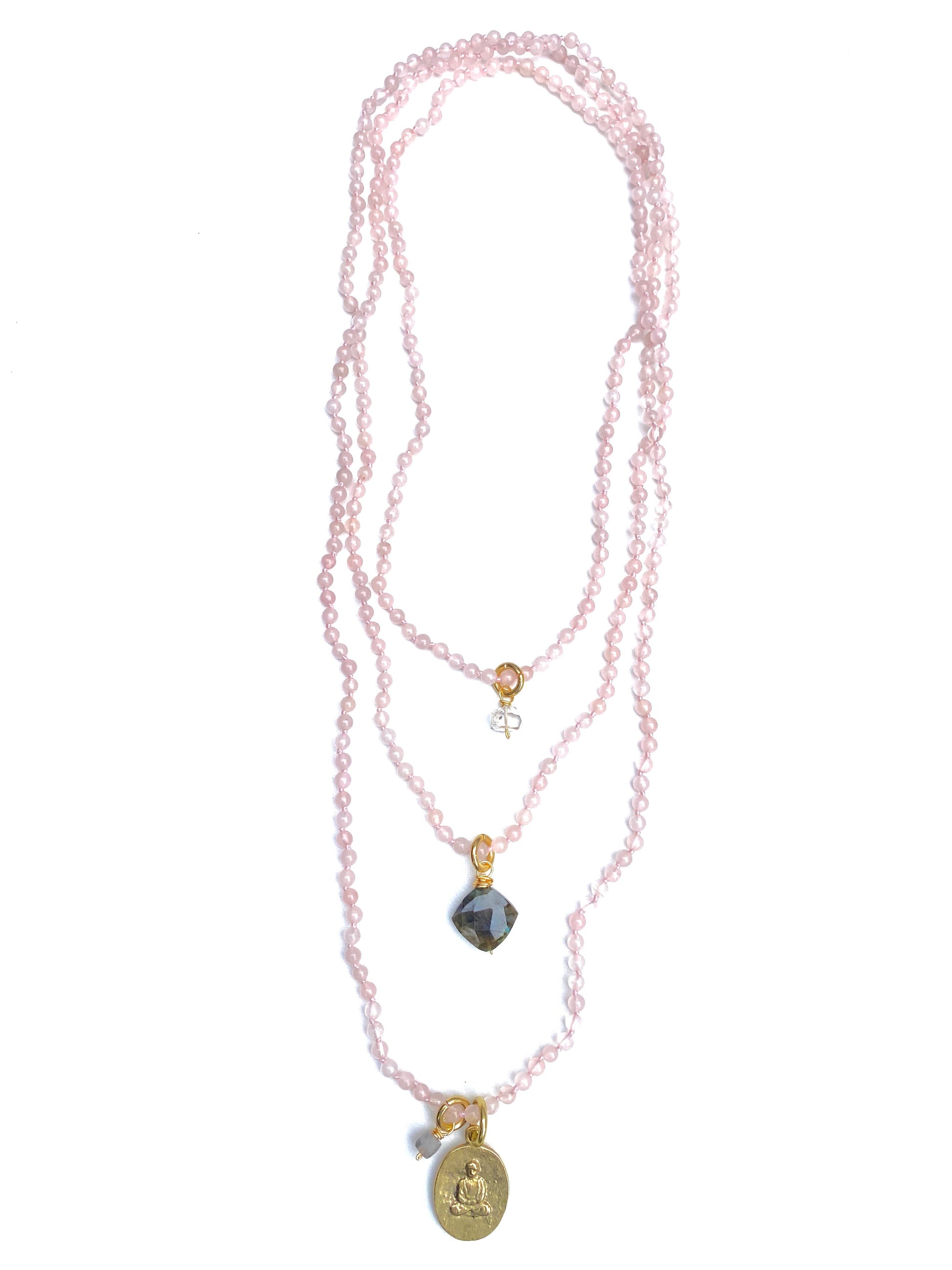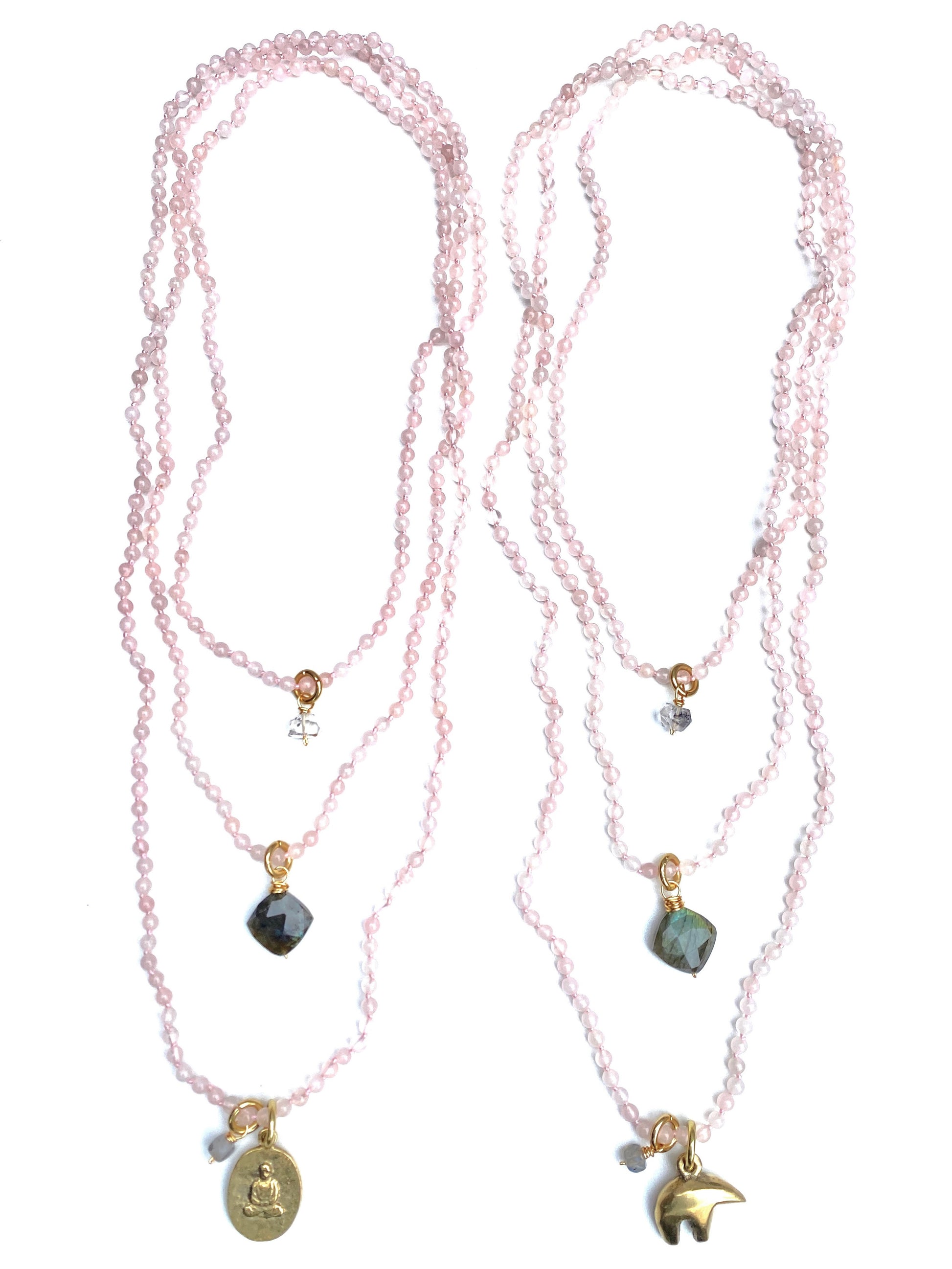It’s no secret that I like to design jewelry that can be worn multiple ways. Our signature Shakti Necklace is just that. These necklaces are 70” long and made from hand-knotted, semi-precious stones, offering a variety of color options. Each necklace includes 4 unique charms and gems, plus a detachable clasp, giving you the ability to adjust the length to your liking.