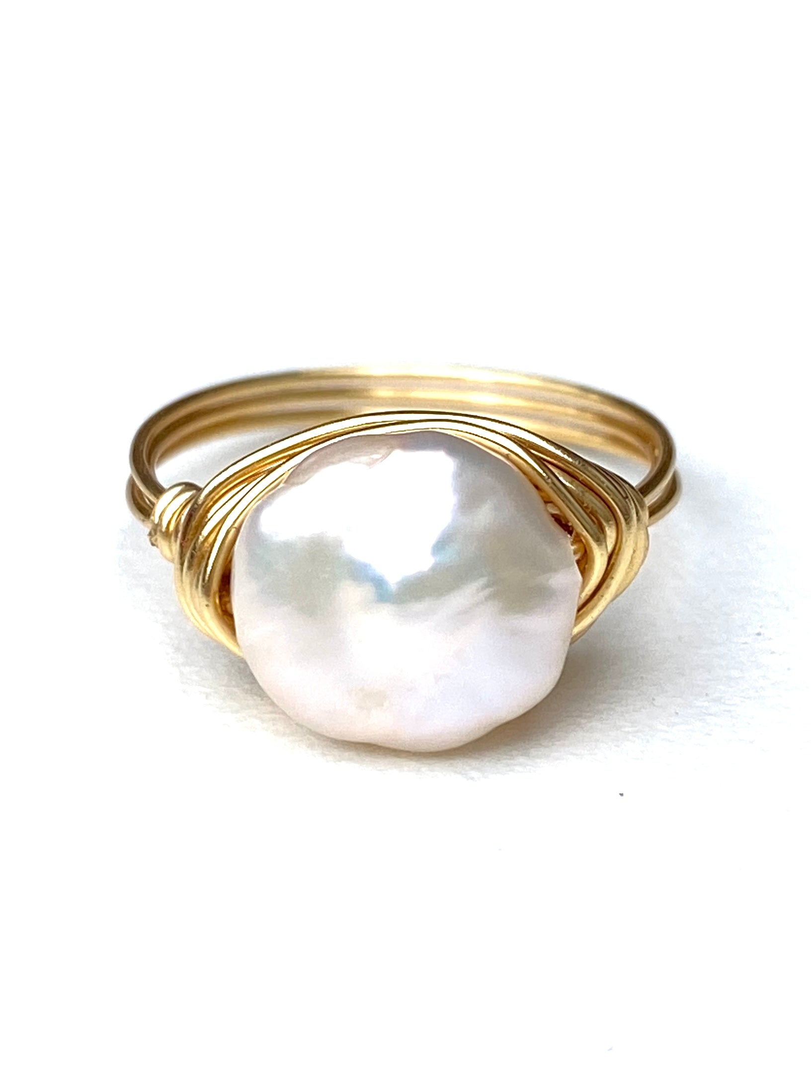 Freshwater pearl wrapped with 14k gold-filled wire.